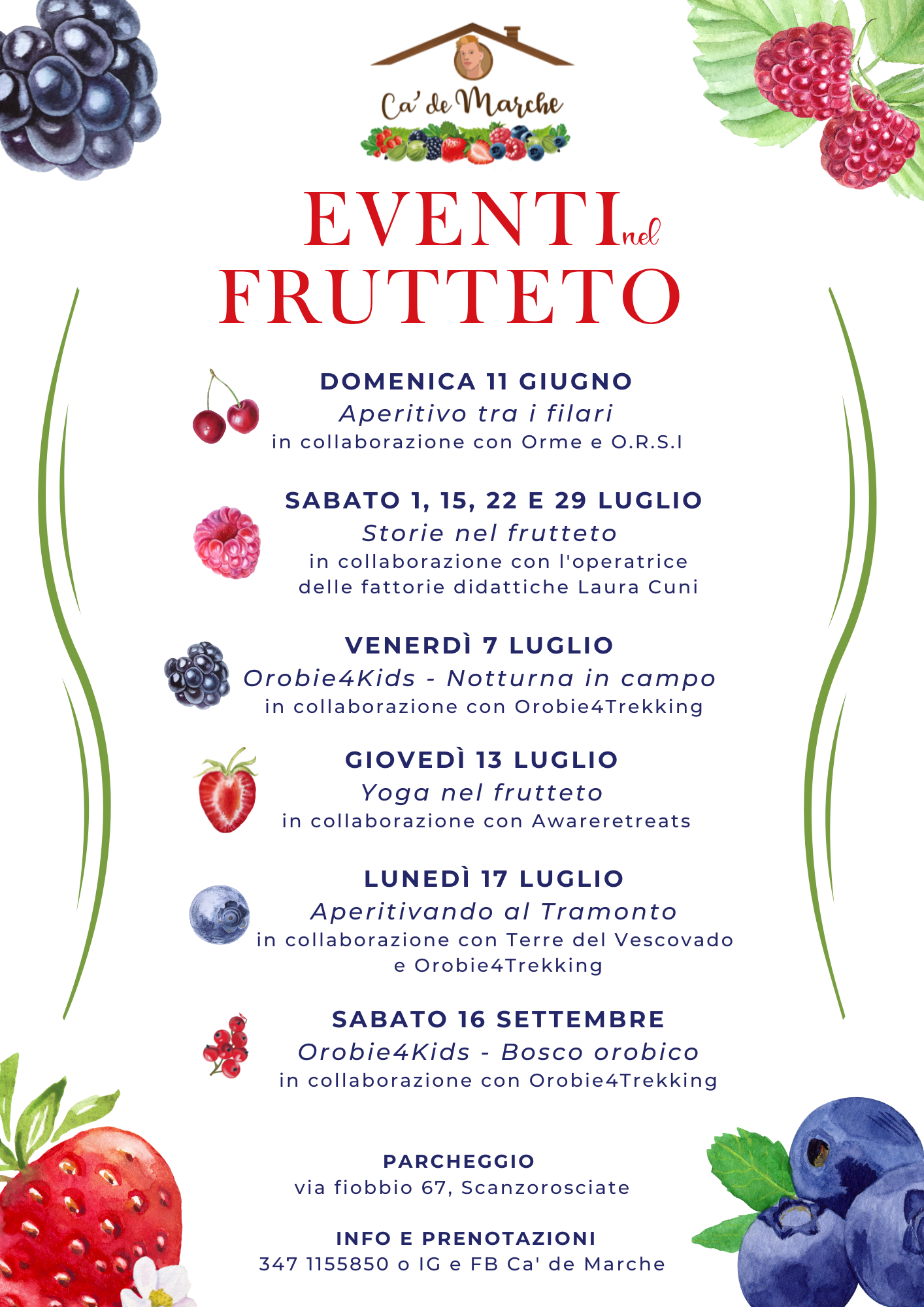 L'azienda agricola Cà de Marche vi aspetta per gustare un ottimo aperitivo all'aria aperta accompagnato da uno speech sull'alimentazione di Chiara Carrara e la presentazione del libro 'Immergersi'.