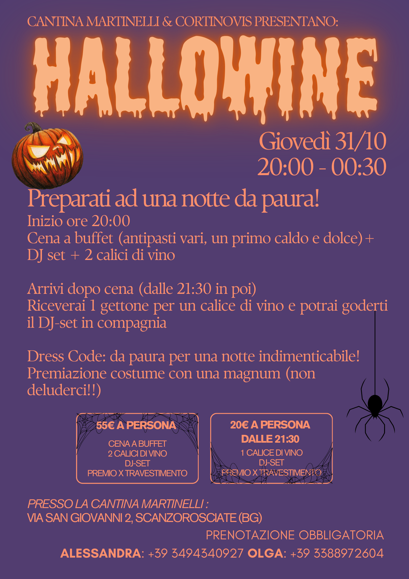 Cantina Martinelli celebra Halloween il 31 ottobre, dalle 20 alle 00:30, con stile: vino, cibo e musica!