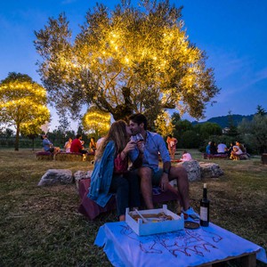 Al termine della passeggiata, mentre vi disseterete degustando un meraviglioso aperitivo alcolico o a piacere un estratto di frutta analcolico, vi verrà indicato dove si svolgerà il vostro picnic ed in loco troverete già tutto il necessario, dalla coperta ai cuscini, dai libri alle sedute.