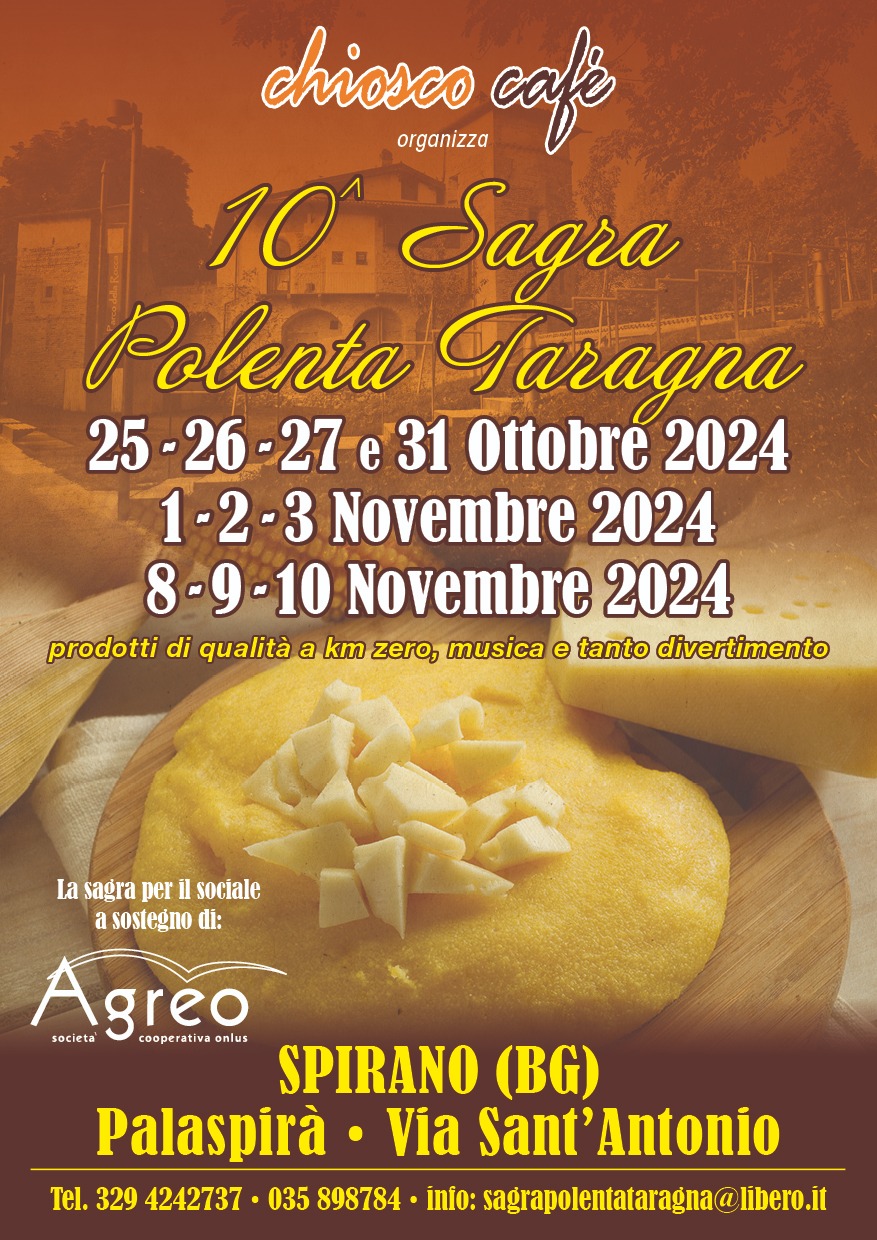 Da sempre la Sagra della Polenta Taragna è dedita al sociale, l'edizione 2024 sarà dedicata al sostegno della Cooperativa Agreo che si occupa si occupa dell’inserimento lavorativo di persone con fragilità, una ragione in più per venirci a trovare e mangiar polenta!