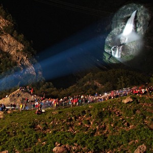 Cena in terrazza presso Rifugio Due baite con vista panoramica sulle Cascate del Serio.