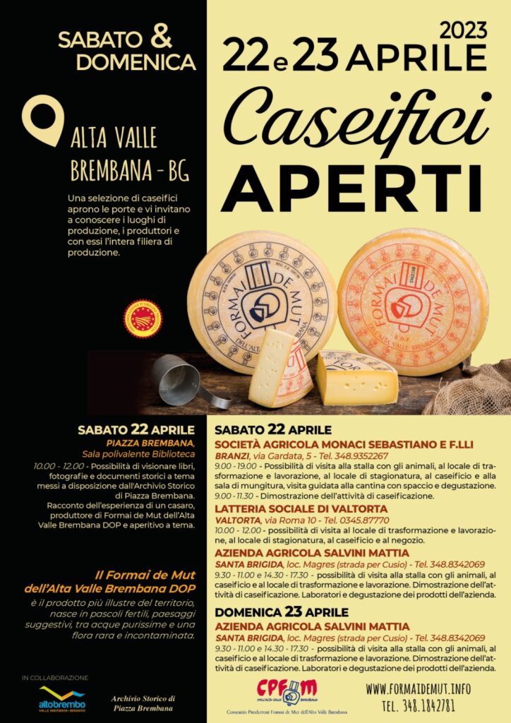 Weekend in alta Valle Brembana dedicato ai prodotti caseari con una selezione di caseifici che aprono le porte e invitano il pubblico a conoscere i luoghi di produzione, i produttori e con essi l'intera filiera di produzione.