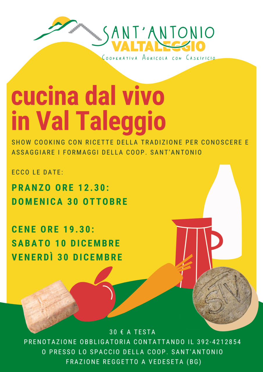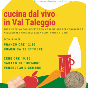 Show cooking con ricette della tradizione culinaria della Val Taleggio per conoscere e assaggiare i formaggi della Cooperativa Sant'Antonio.