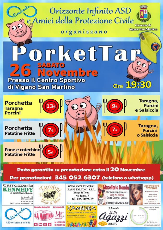 Orizzonte Infinito ASD e Amici della Protezione Civile organizzano una giornata di porchetta e buon cibo.