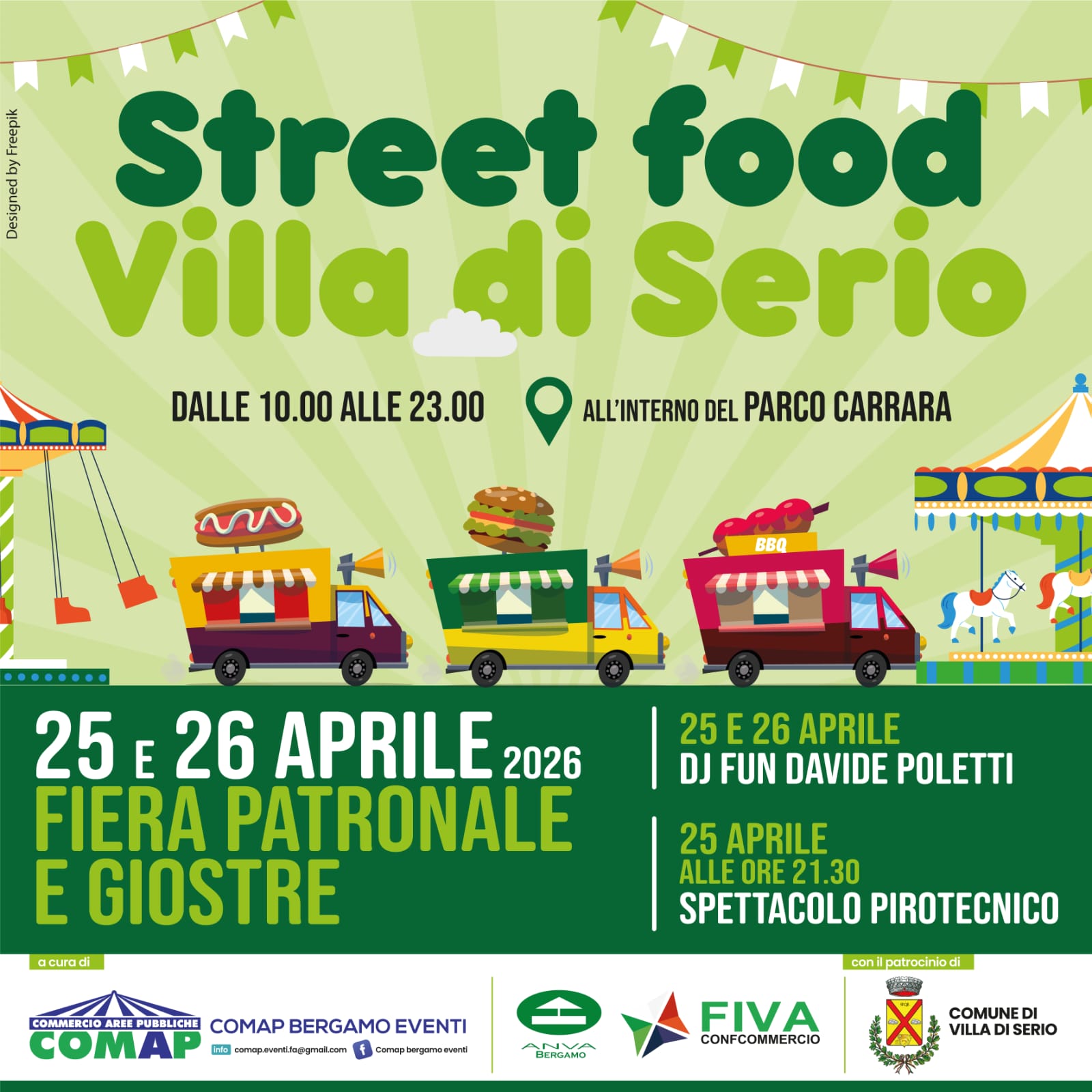 Il 25 e 26 aprile, arriva lo Street Food al Parco Carrara di Villa di Serio. Due giorni da vivere con calma e con fame: si mangia, si brinda, si sta in compagnia e ci si gode la musica, tra risate e atmosfera da festa fino a sera.