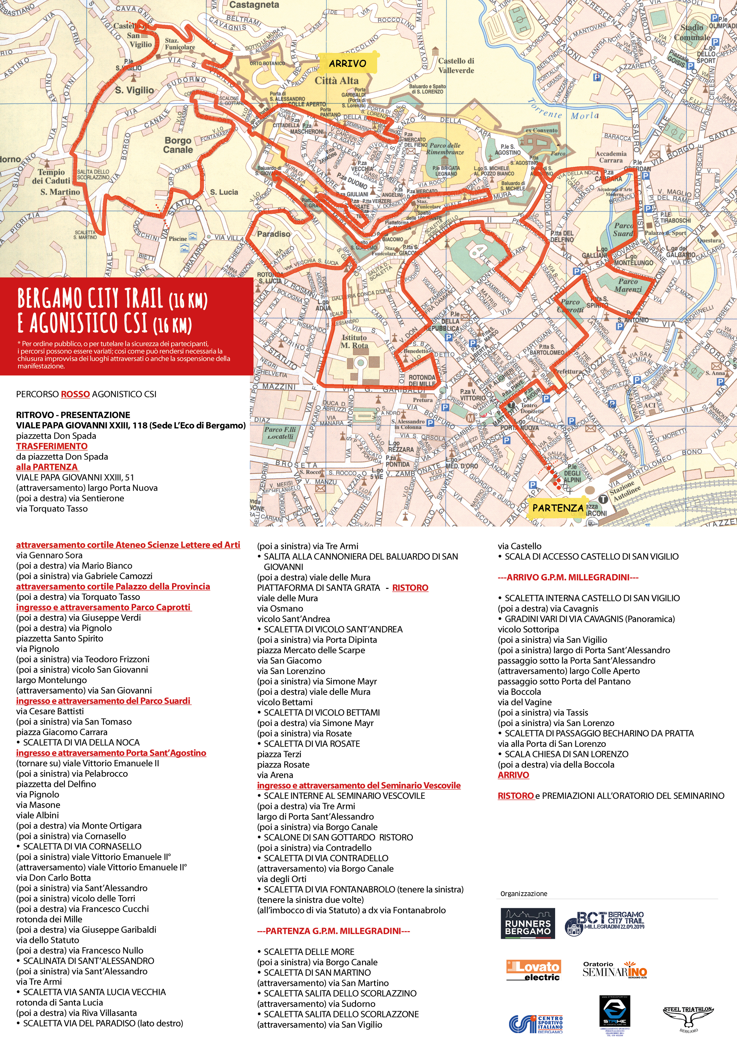 Gara podistica su percorso di circa 16 km con dislivello +800 mt su strada, sterrato e gradinate tra le vie di Bergamo Bassa e Alta.