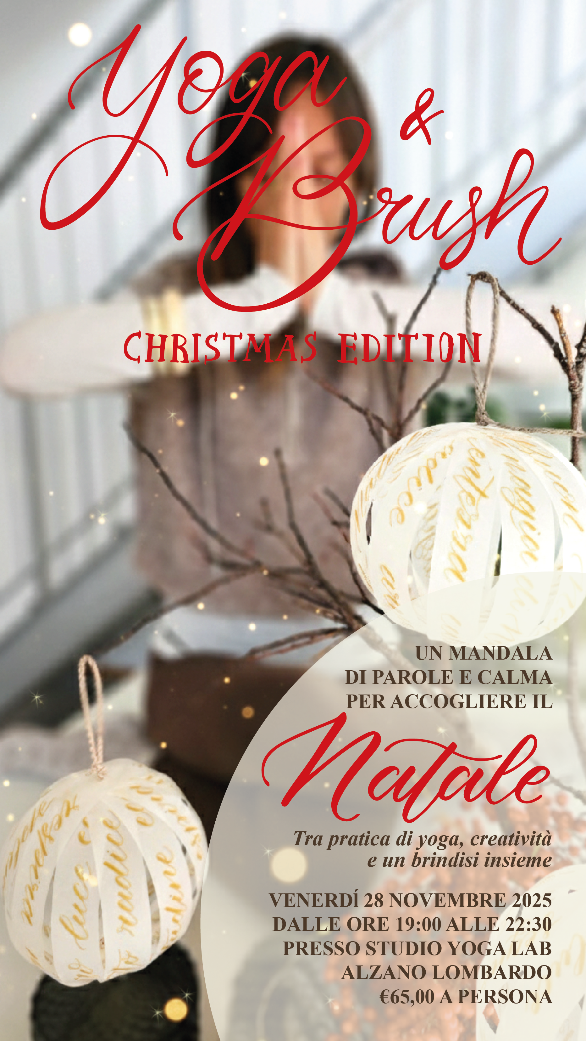 Venerdì 28 Novembre, dalle 19 alle 22,30, da YogaLab ad Alzano come da tradizione un nuovo appuntamento: Yoga & Brush Christmas Edition: una serata fatta di respiro, carta e sorrisi, dove ogni gesto diventa un piccolo rituale.