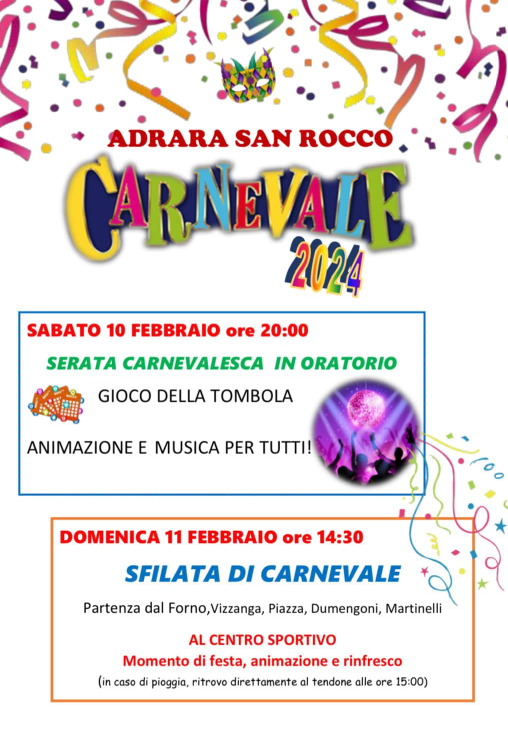 Sabato 10 e domenica 11 febbraio si festeggerà il Carnevale ad Adrara San Rocco.