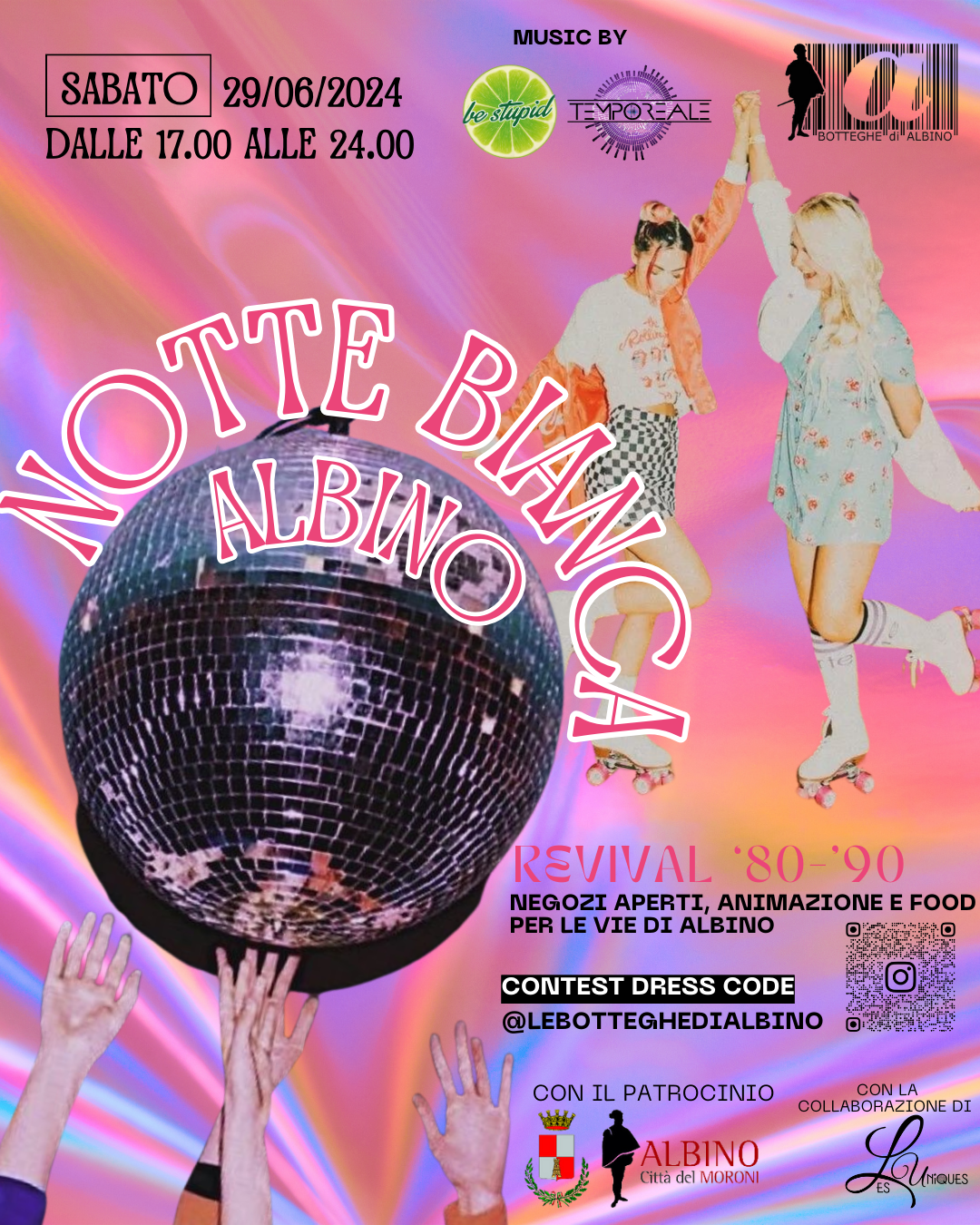 La notte bianca ad Albino torna dopo l'ultima edizione del 2018. Tema anni '80 e '90, con contest dress code a tema.