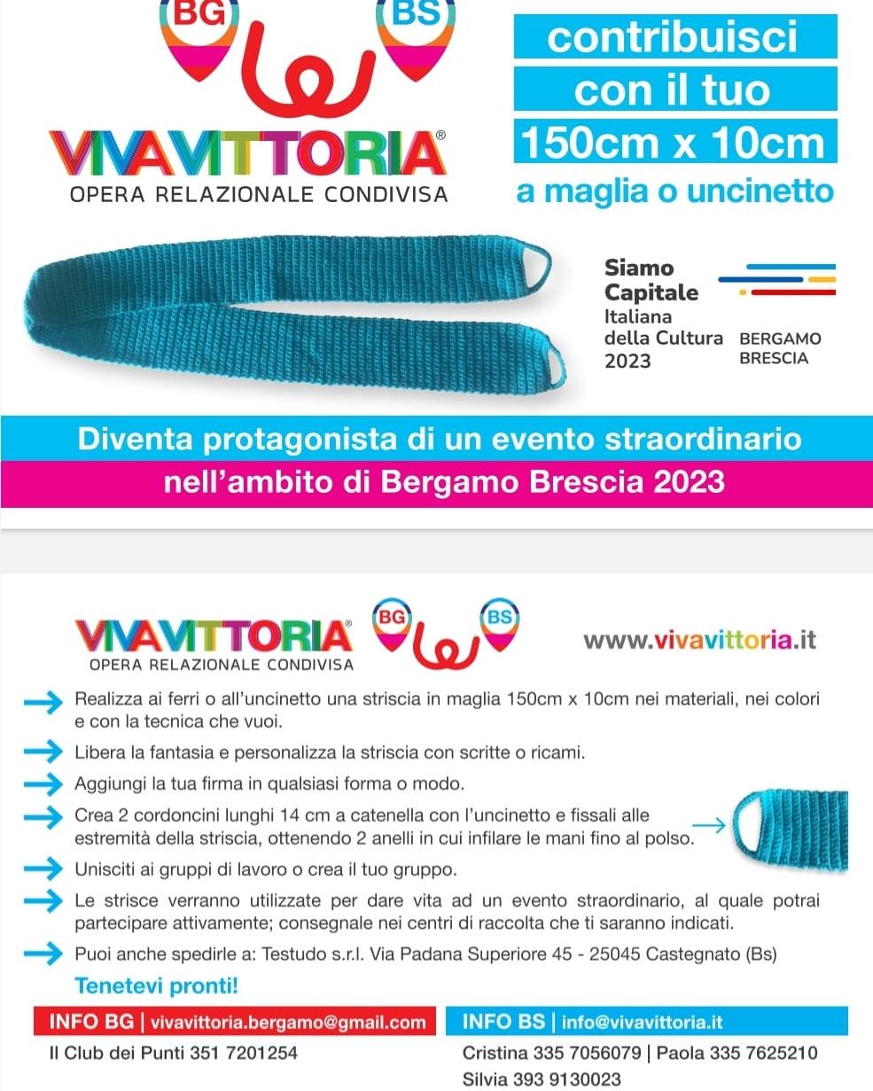 Tante strisce a maglia o uncinetto per unire le città di Bergamo e Brescia in un unico abbraccio in occasione di Bergamo Brescia Capitali della Cultura 2023.