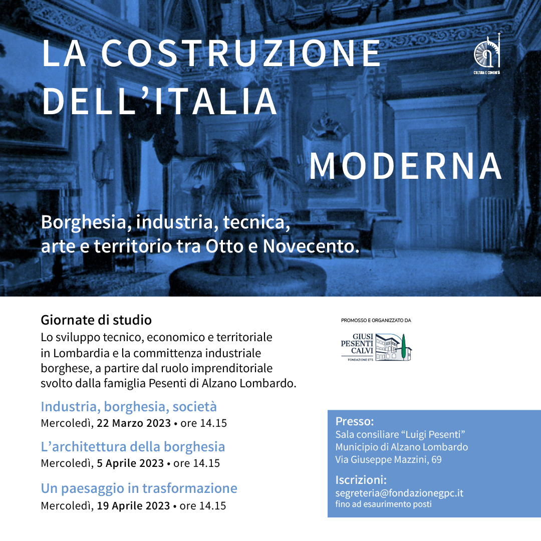 Tre intense giornate di studi dal titolo "La costruzione dell'Italia moderna" (presso il Municipio) in cui la stagione d'oro dello sviluppo industriale, economico e urbano di Alzano verrà letta nel più generale affresco della realtà lombarda e nazionale.