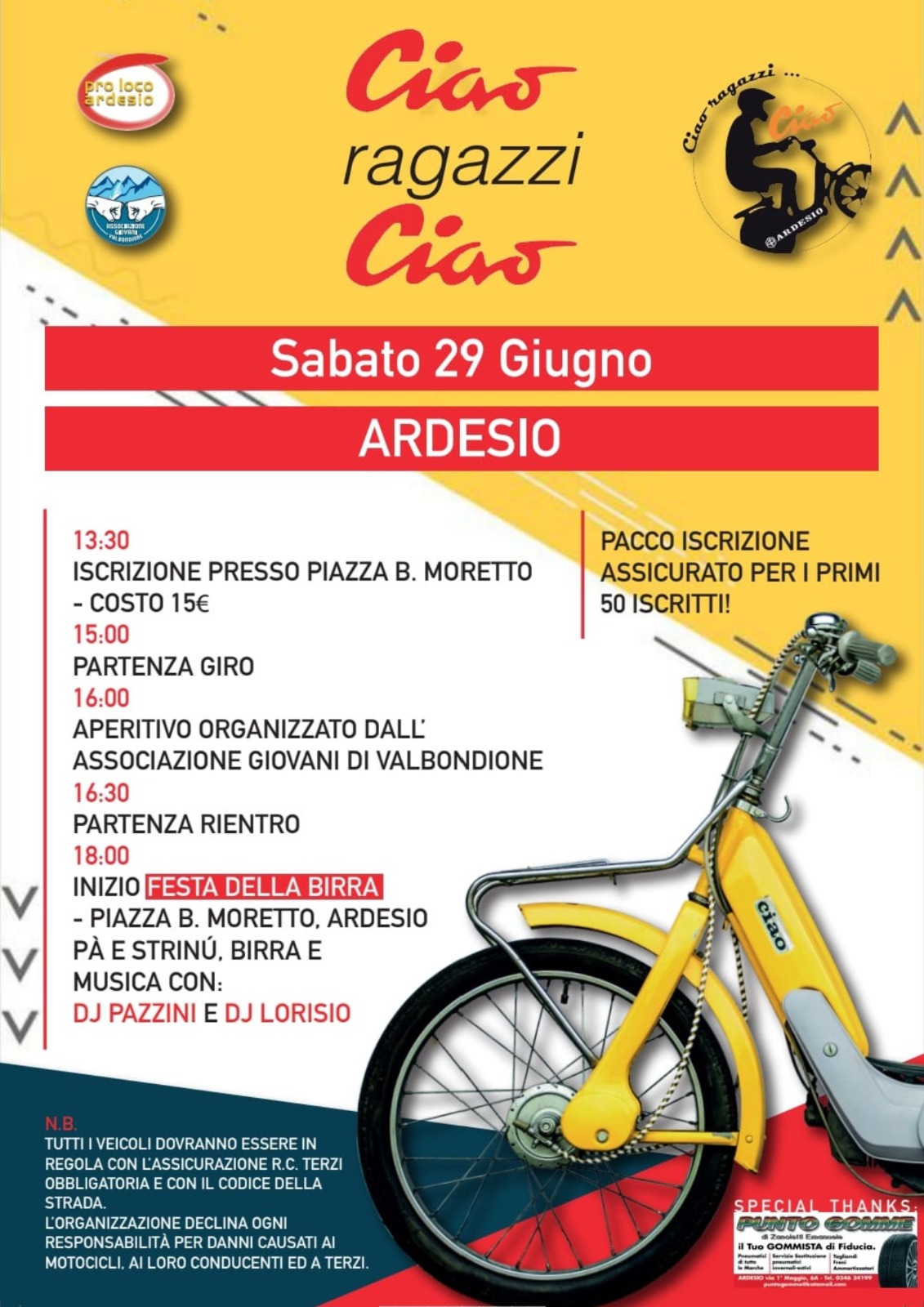 Quanti ancora hanno in garage un Ciao? È giunto il momento di rimetterlo in strada e di portarlo ad Ardesio per partecipare al raduno e alla festa organizzata dalla Pro Loco Ardesio.