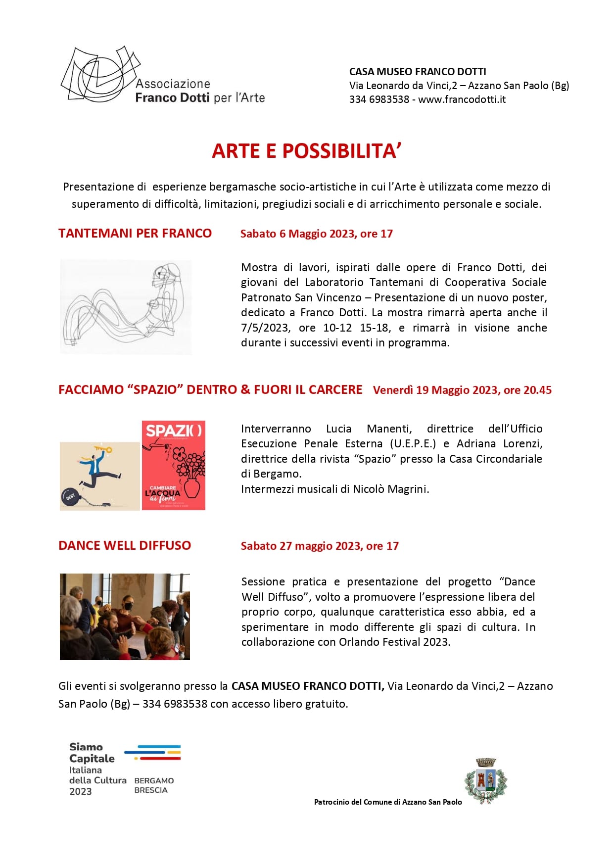 All'interno di "Arte e possibilità", la presentazione di esperienze bergamasche socio-artistiche in cui l'Arte è utilizzata come mezzo di superamento di difficoltà e limitazioni, sessione pratica e presentazione del progetto.