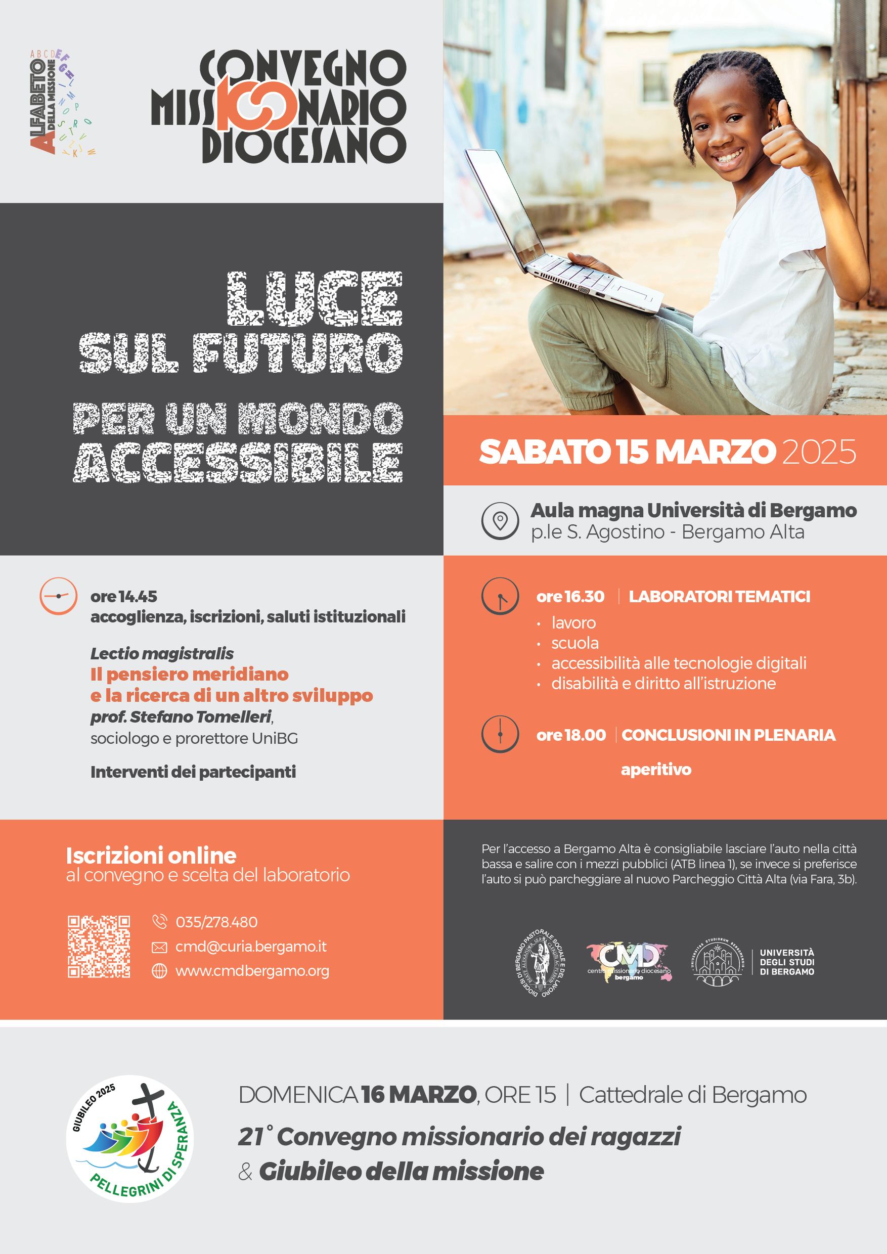 Il 100esimo Convegno missionario diocesano si terrร all'Universitร di Bergamo, nell'incantevole Aula Magna, in Cittร alta. Sarร dedicato allโapprofondimento sulla dignitร nella cultura e, proprio per la tematica cosรฌ ampia che interseca tante altre attenzioni (formazione scolastica, educazione, avviamento al lavoro, ecc...) e apre tanti fronti (internet, accessibilitร alle tecnologie digitali, intelligenza artificiale, disequilibri Nord-Sud, inclusione, ecc...), abbiamo chiesto all'Universitร di Bergamo di aprire i nostri orizzonti.