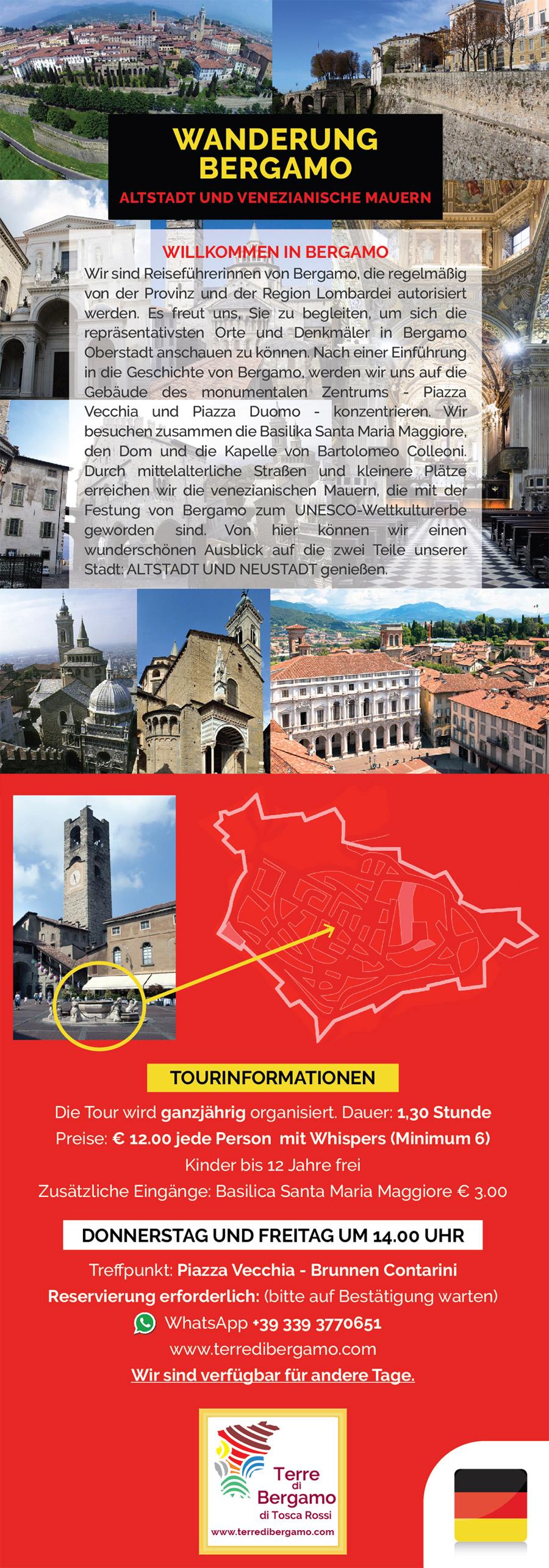Ogni settimana Terre di Bergamo organizza visite guidate della Città Alta, in lingua italiana e tedesca.