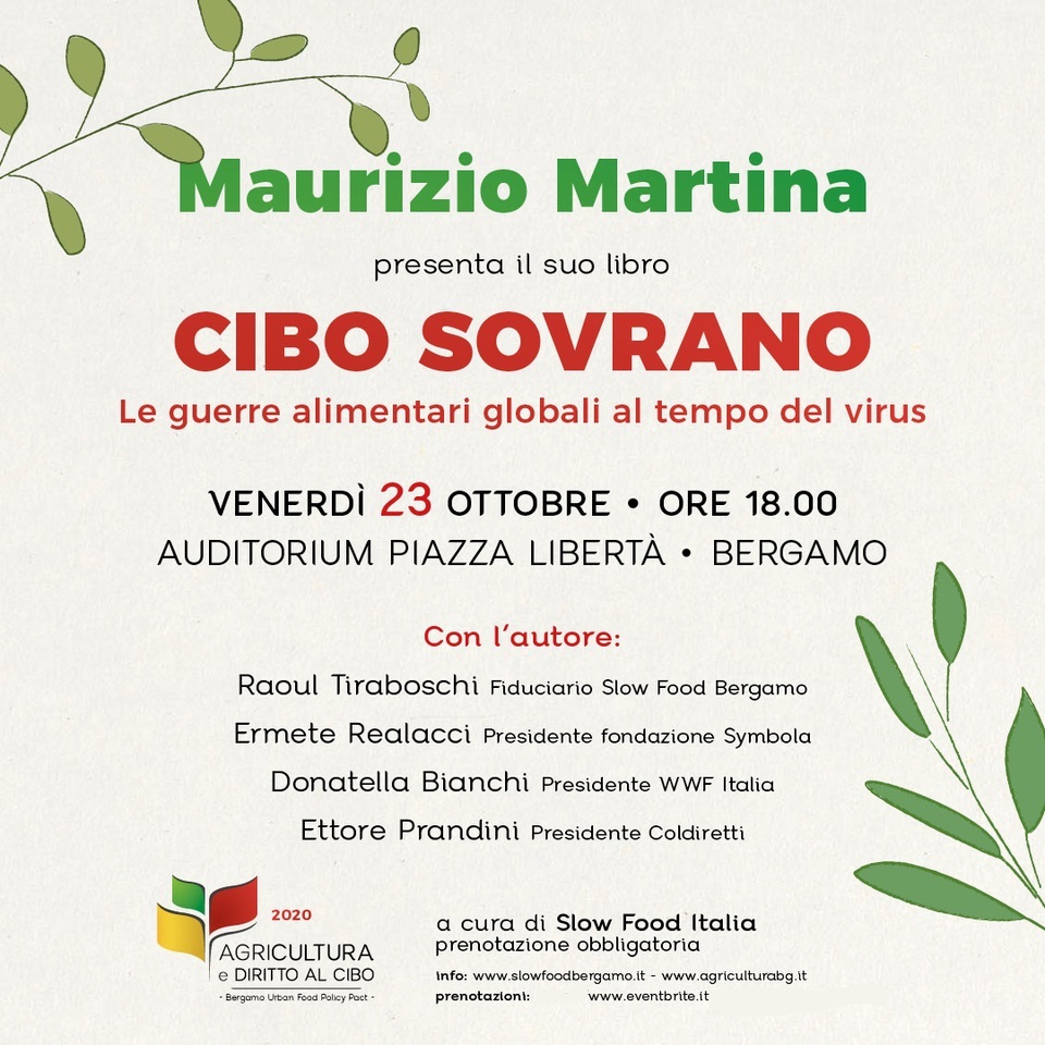Nell'ambito della quarta edizione di “Agricultura e diritto al cibo”, manifestazione dedicata ai temi dell’alimentazione di qualità e di un’agricoltura sostenibile, presentazione del libro dell'On. Maurizio Martina.