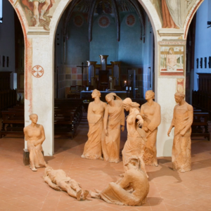 Le otto figure in terracotta dello scultore fanno tappa nella chiesa di Santo Spirito a Bergamo.