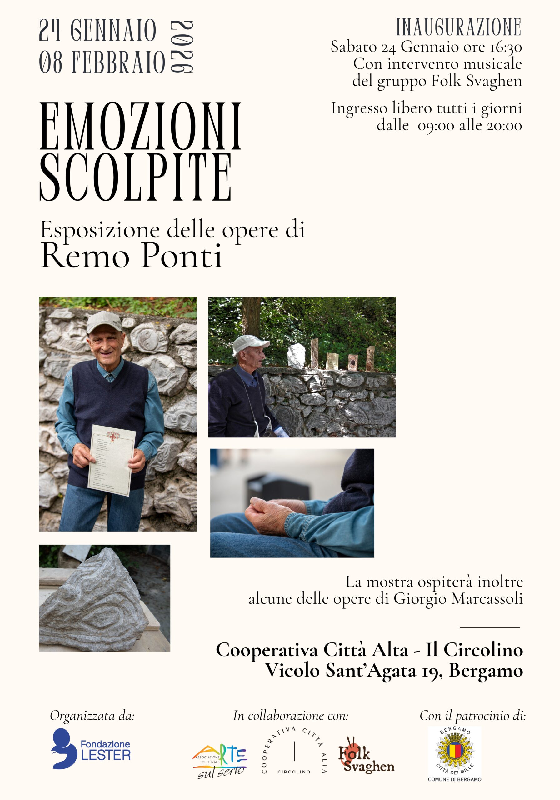 Alla Sala Civica Sant'Agata in Città Alta, è in programma la mostra delle opere dell'artista Remo Ponti, definito il poeta delle pietre.