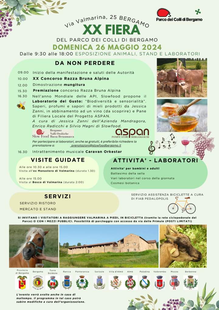 Torna come ogni anno l’atteso appuntamento con il mondo agricolo, la Fiera del Parco dei Colli di Bergamo, alla sua XX edizione. Laboratori ed esposizione di animali animeranno la valletta di Valmarina e il suo ex monastero benedettino, alle porte della città di Bergamo.