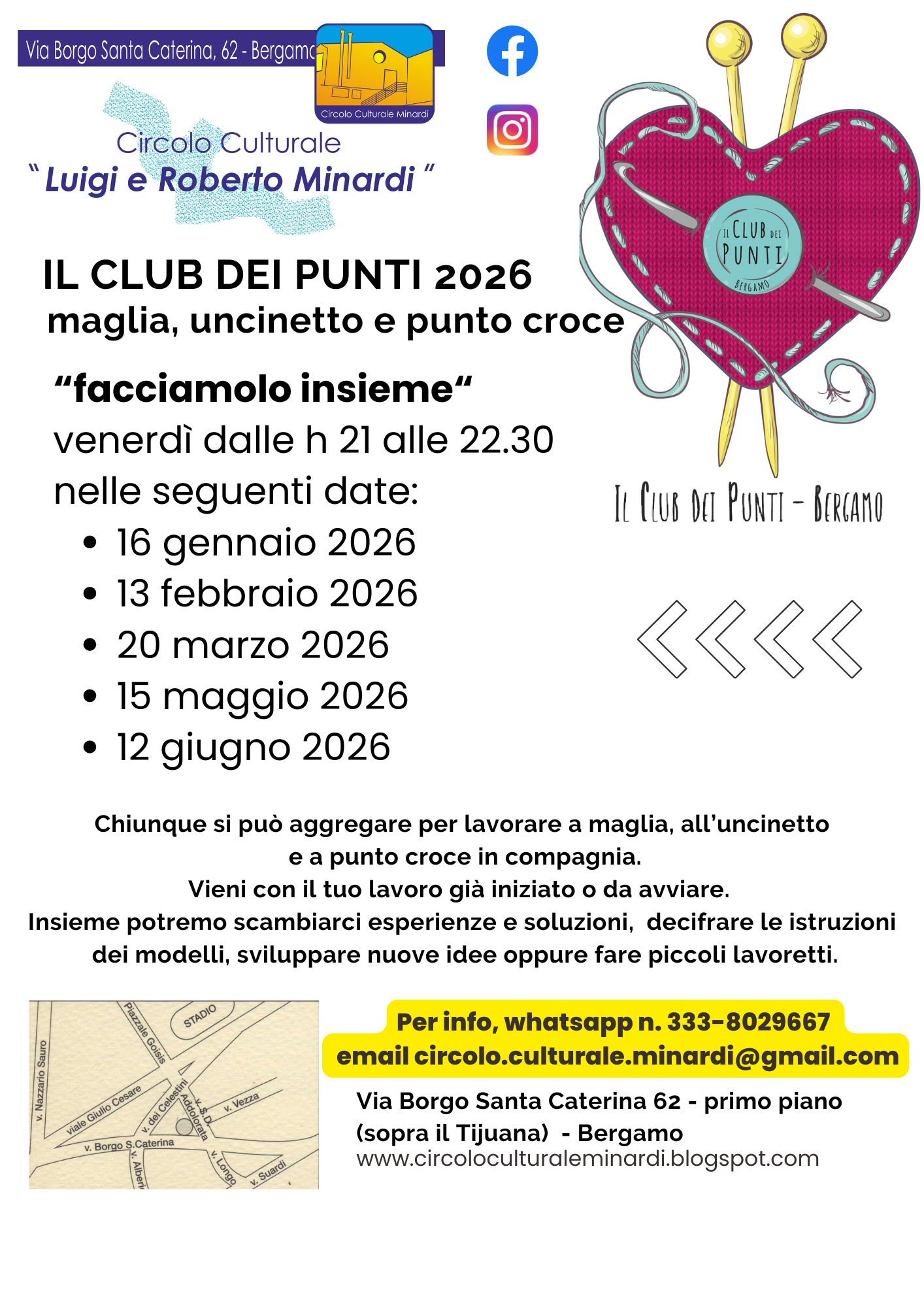 Un venerdì sera al mese al Club dei Punti a lavorare a maglia e uncinetto, chiacchierare e creare insieme.