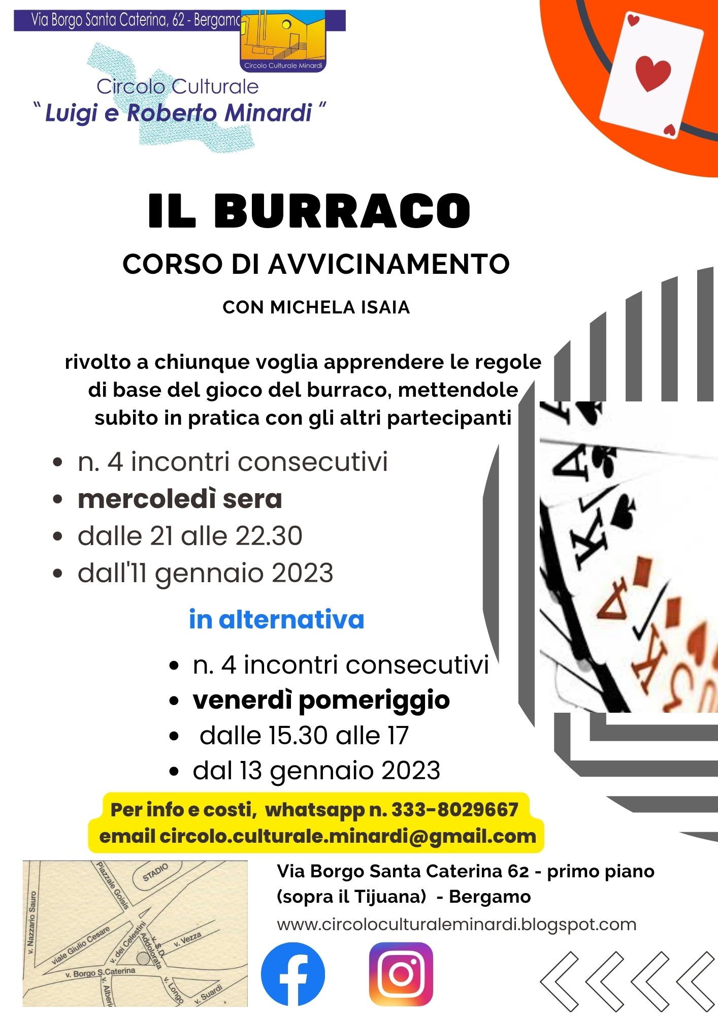 Corso di avvicinamento a questo gioco di carte per chiunque voglia apprendere le regole di base del gioco del burraco, mettendole subito in pratica con gli altri partecipanti.