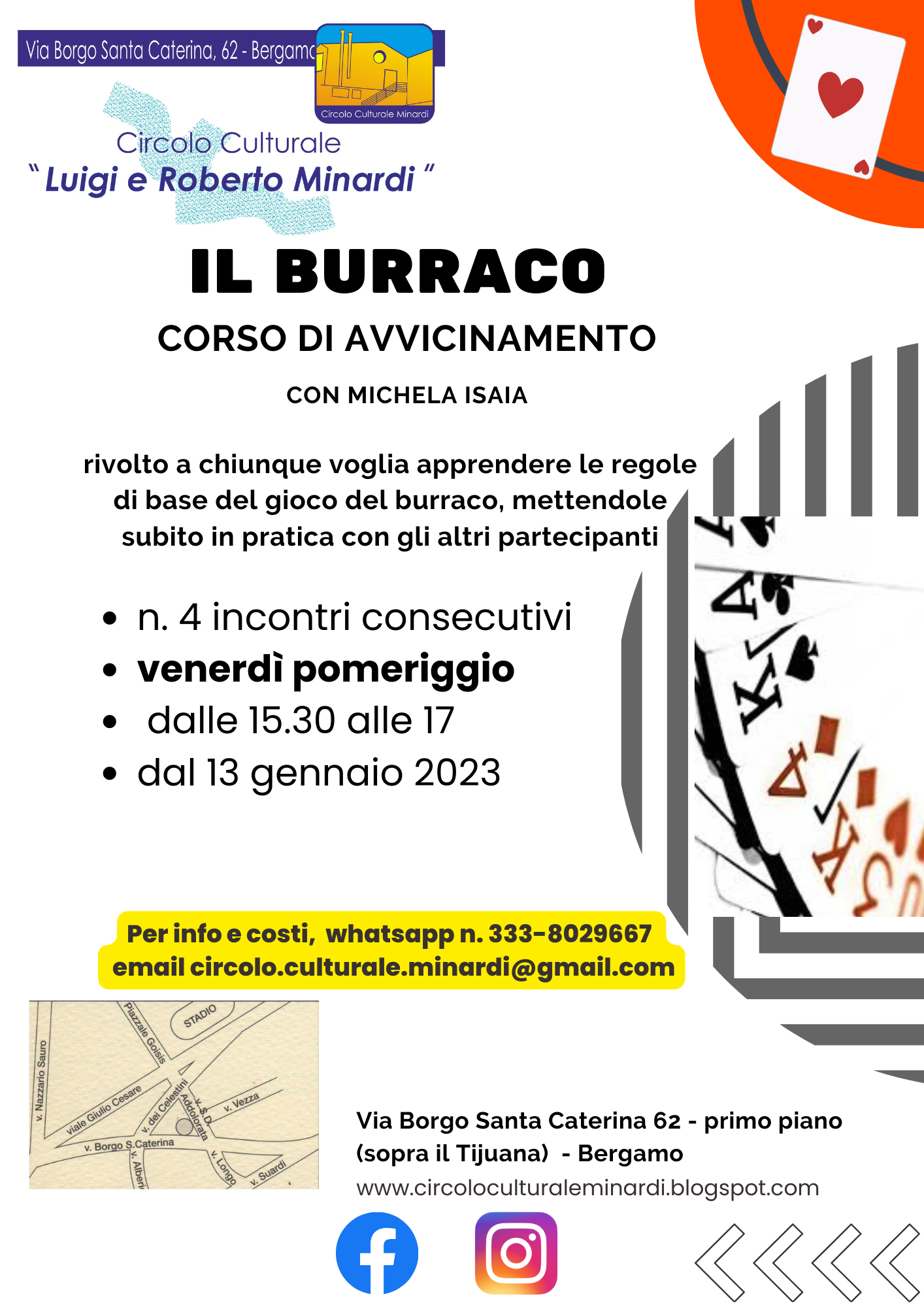 Corso di avvicinamento al burraco rivolto a chiunque voglia apprendere le regole di base del gioco del burraco, mettendole subito in pratica con gli altri partecipanti.