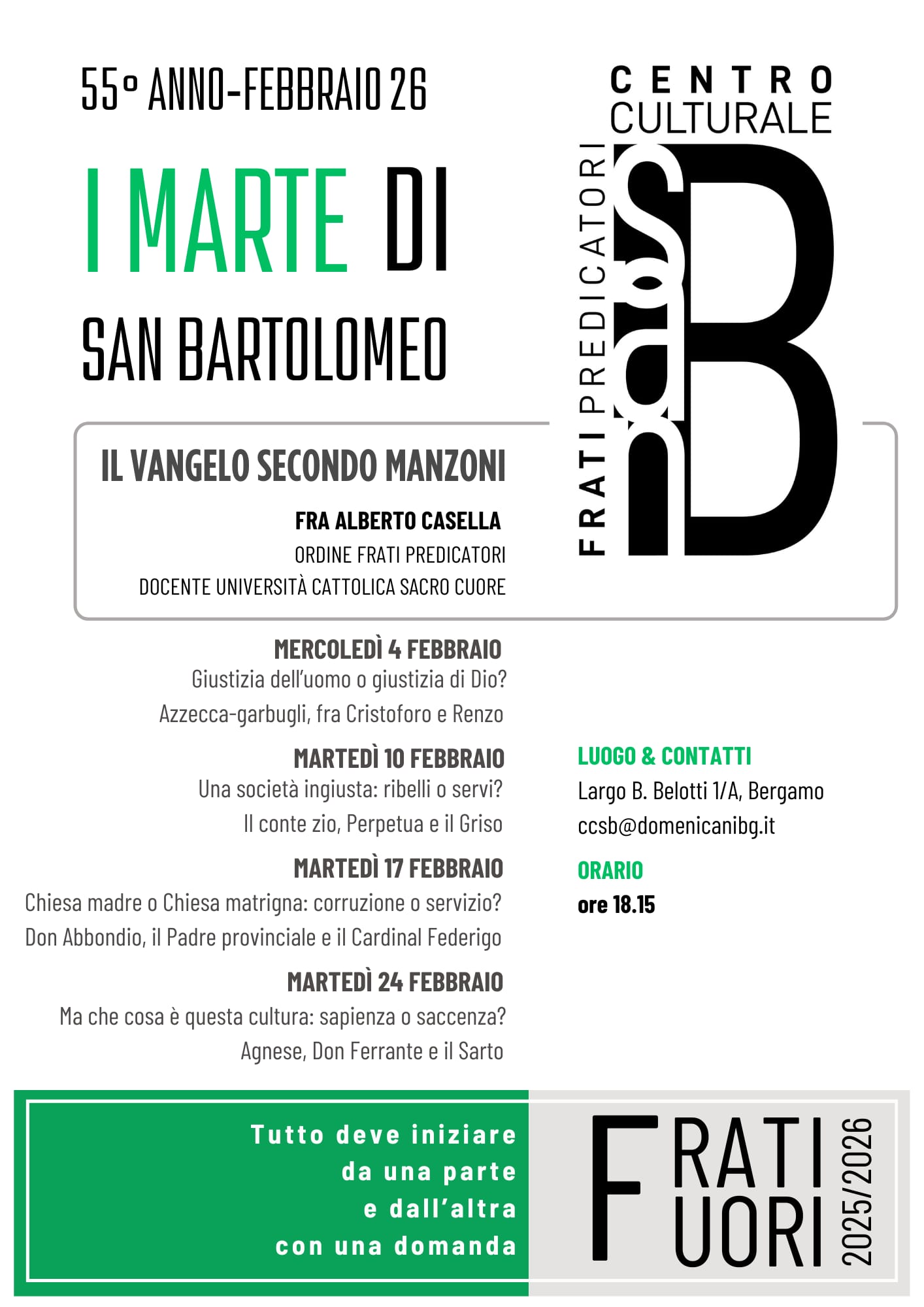 Per il ciclo di incontri di «I marte di San Bartolomeo», un viaggio nei Promessi Sposi con Agnese, don Ferrante e il Sarto, rispondendo a domande e provocazioni filosofiche.