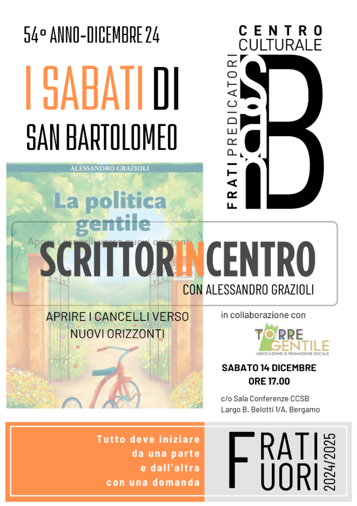 I Frati Predicatori di Bergamo organizzano un incontro con Alessandro Grazioli, scrittore e pensatore, che presenterà il suo libro "La politica gentile".