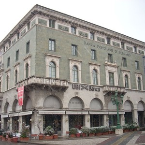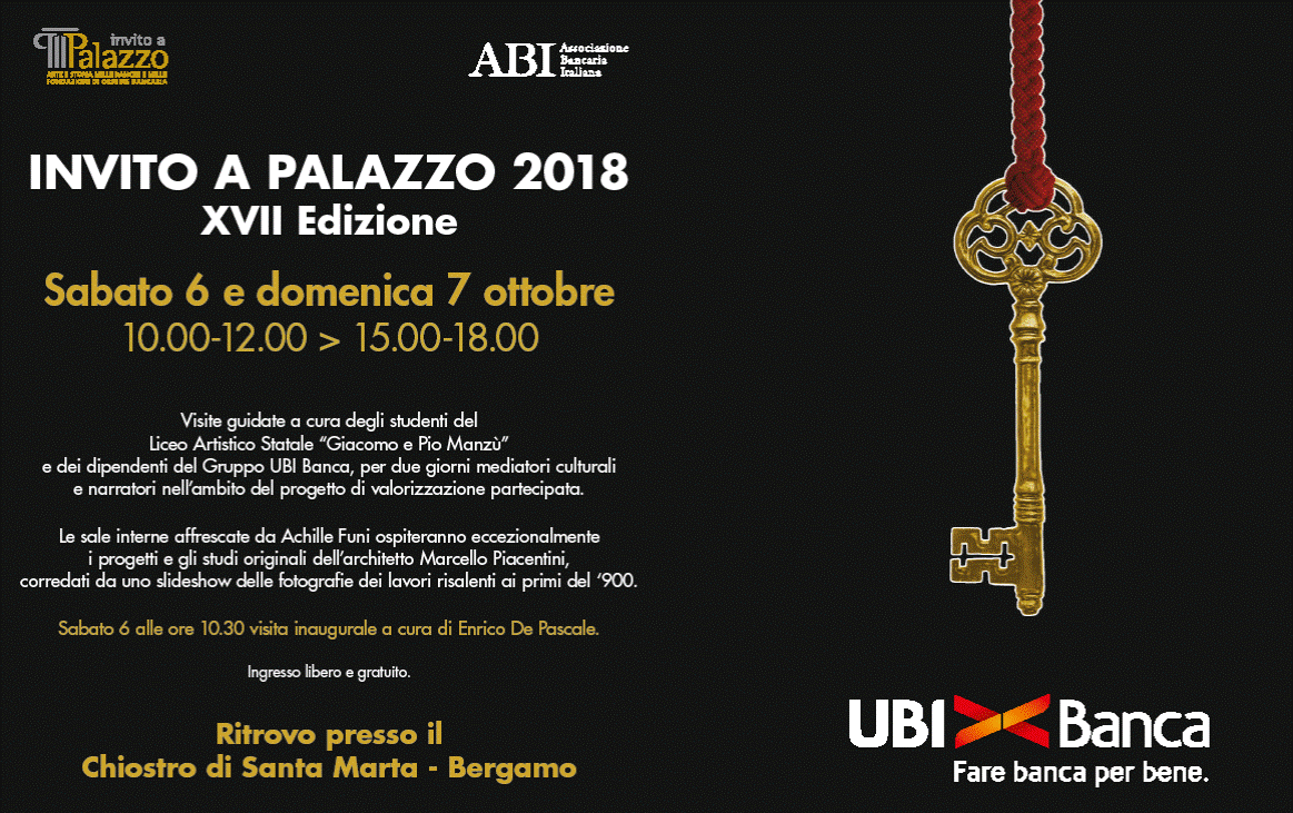 La sede direzionale di UBI Banca a Bergamo è costituita da due palazzi, il Palazzo della ex Banca Popolare di Bergamo e il Palazzo ex Banca Bergamasca. Il primo nasce da un concorso indetto dalla Banca Mutua Popolare, fondata nel 1869, per realizzare il progetto della nuova sede “da erigersi sul posto ora occupato dal già Albergo Cavour” e dal trecentesco convento domenicano femminile di Santa Marta, soppresso dalla Repubblica Cisalpina nel 1798. L’edificio, inaugurato nel 1899, ampliato dopo la Seconda guerra mondiale, costituisce oggi uno degli elementi fondamentali dell’identità urbana della città. Gli uffici direzionali ospitano i cicli pittorici della Sala della “Gerusalemme Liberata” e della Sala de “La Civiltà d’Italia” realizzati nel 1951-52 da Achille Funi e dai suoi allievi e una parte significativa della collezione d’arte di UBI Banca. L’attiguo Palazzo già della Banca Bergamasca si affaccia sul Sentierone e viene inaugurato nel 1926 su progetto di Marcello Piacentini.