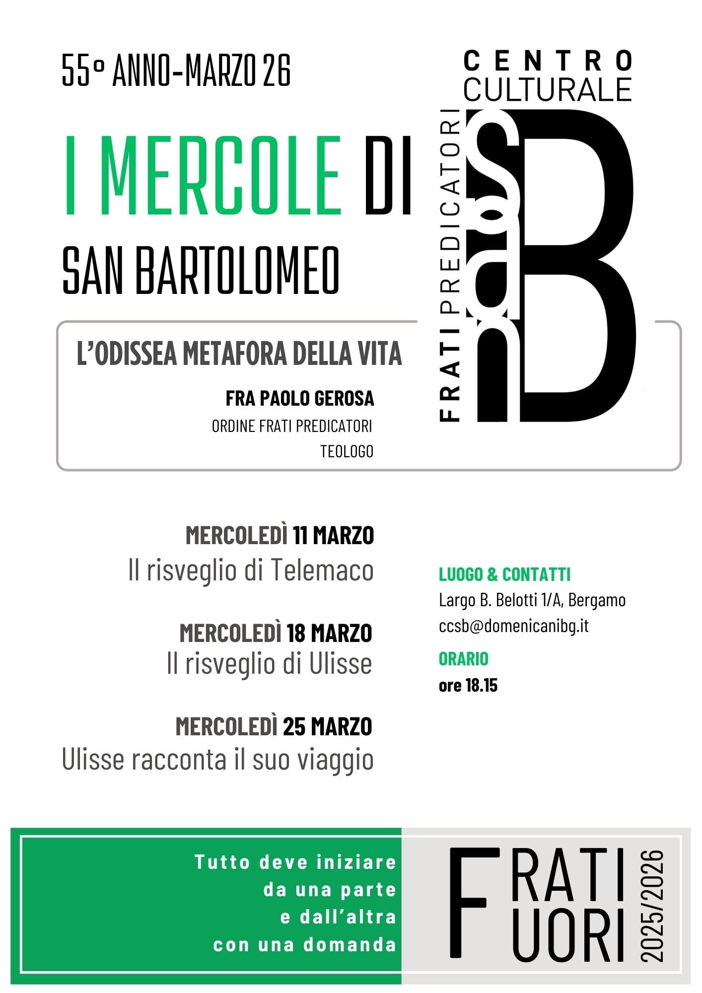 Nuovo ciclo di incontri sull'Odissea, uno dei grandi capolavori della letteratura di tutti i tempi, accompagnati dalla frizzante verve di fra Paolo Gerosa, teologo, filosofo e studioso di letteratura greca e latina.