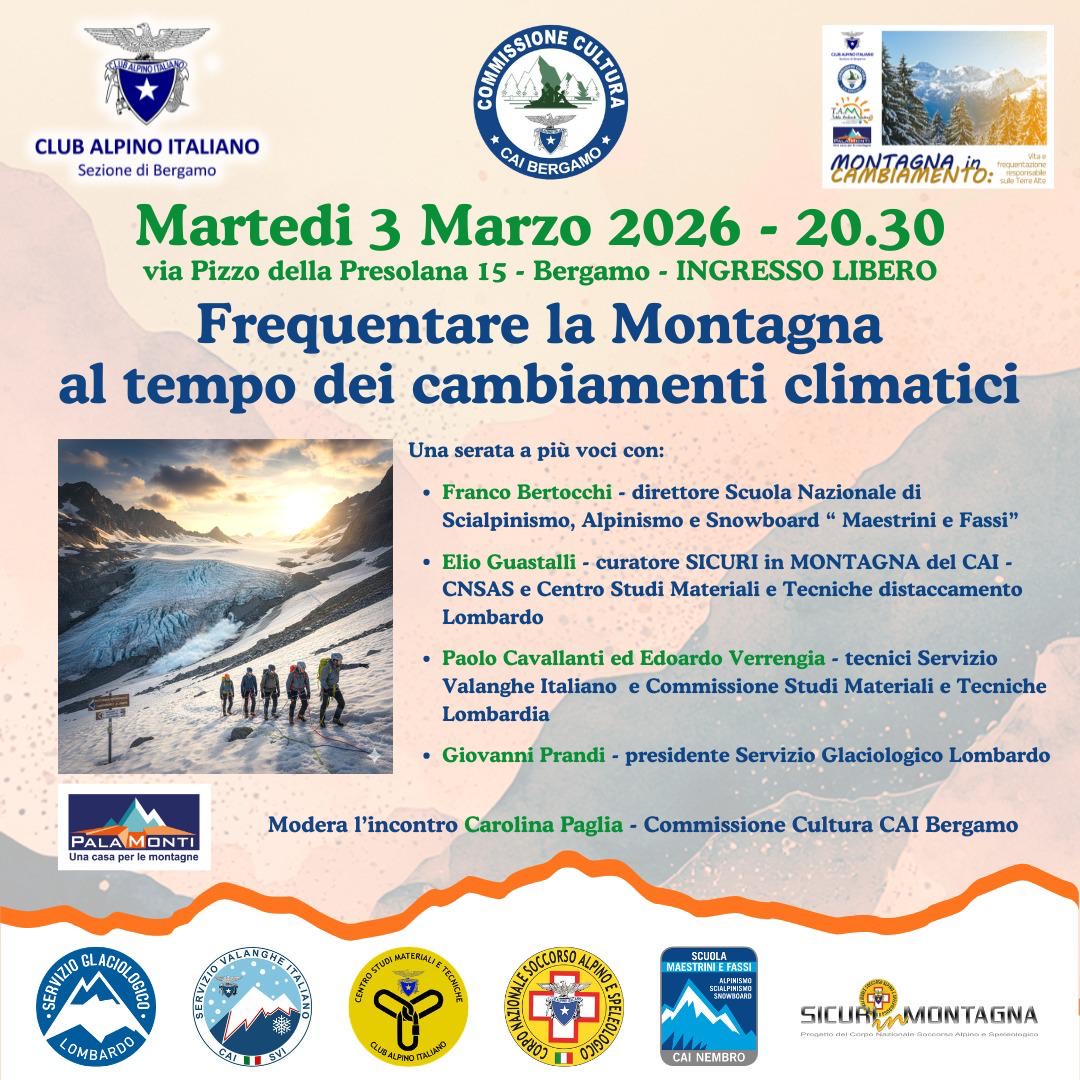Al Palamonti di Bergamo, è in programma un convegno per discutere della montagna e dei cambiamenti climatici che stanno colpendo indistintamente il territorio alpino, a cura del Club Alpino Italiano.