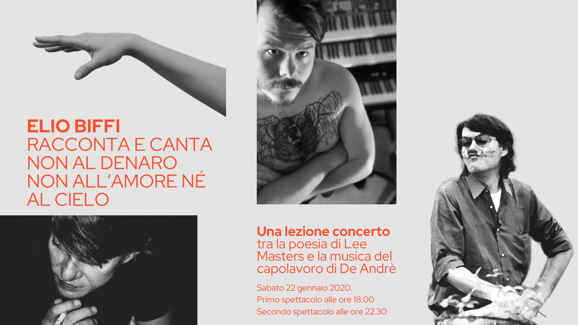 All'edoné Bergamo Elio Biffi racconta e canta in una lezione concerto tra la poesia di Lee Masters e la musica del capolavoro di De Andrè.