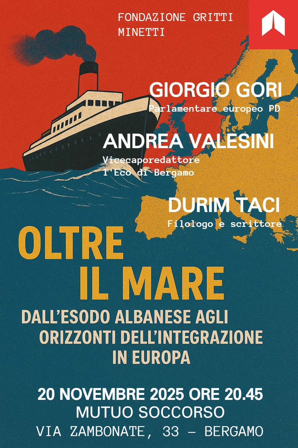 La Fondazione Gritti Minetti promuove un incontro pubblico dal titolo «Il mare. Dall’esodo albanese agli orizzonti dell’integrazione in Europa», un’occasione di riflessione sui temi della migrazione, dell’accoglienza e delle prospettive europee di integrazione.