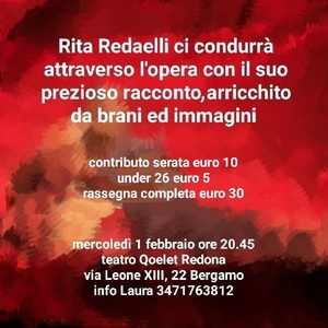 In questo primo evento la nostra esperta di fiducia Rita Redaelli ci condurrà all'interno di questa opera.