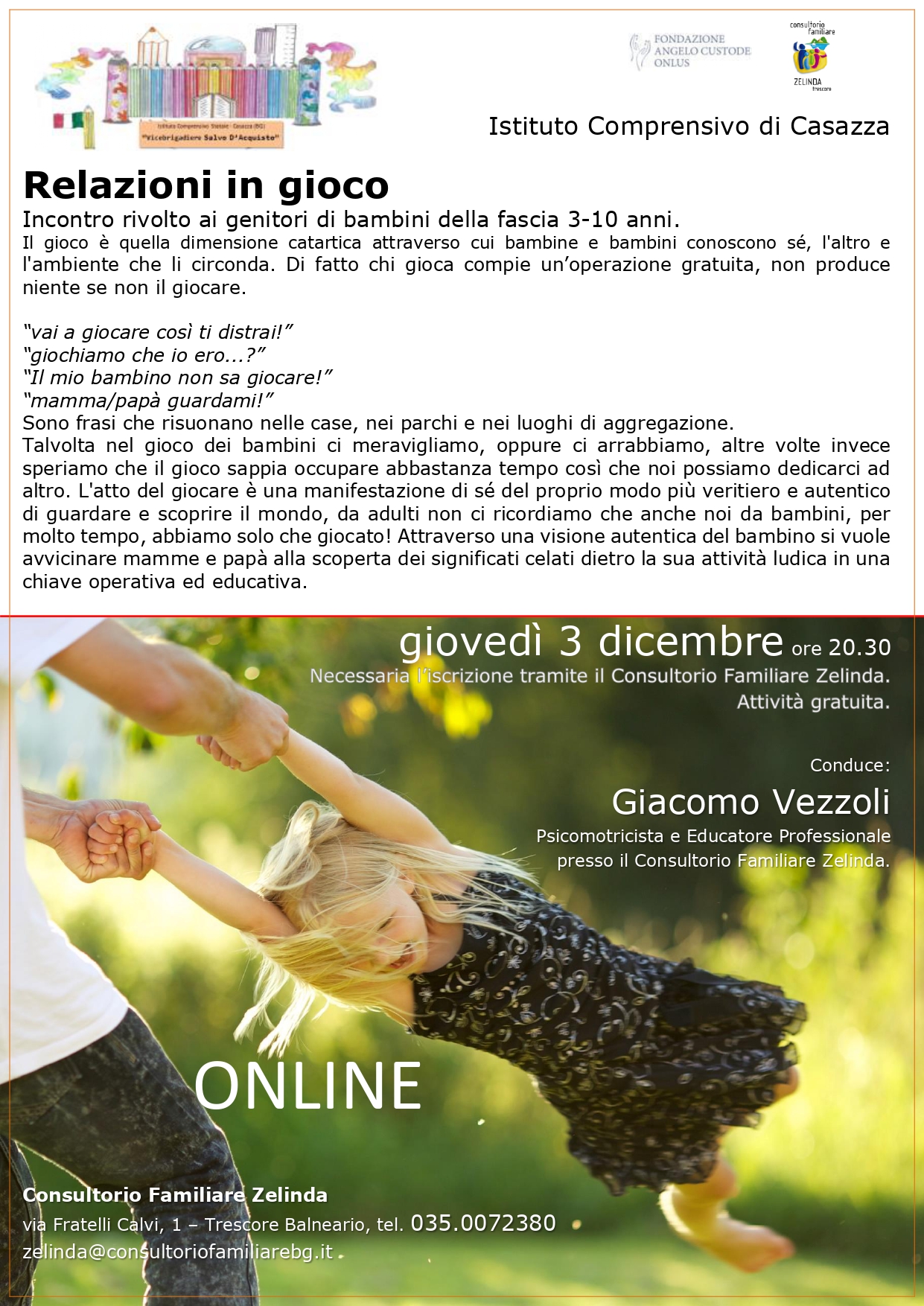 Incontro rivolto ai genitori di bambini della fascia 3-10 anni.