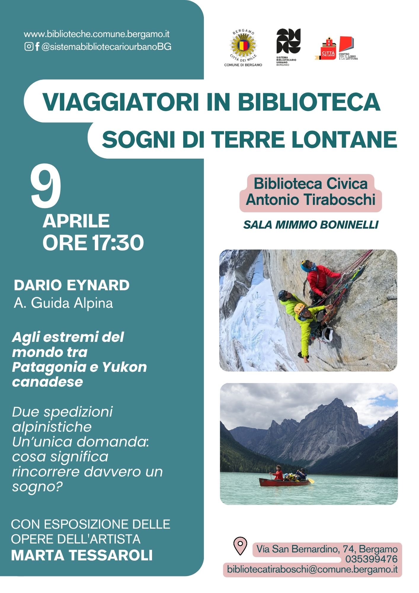 Per il ciclo di incontri ยซViaggiatori in bibliotecaยป, della Biblioteca Civica Antonio Tiraboschi, รจ in programma un incontro con Dario Eynard, che racconterร dei suoi viaggi in Patagonia e Canada.