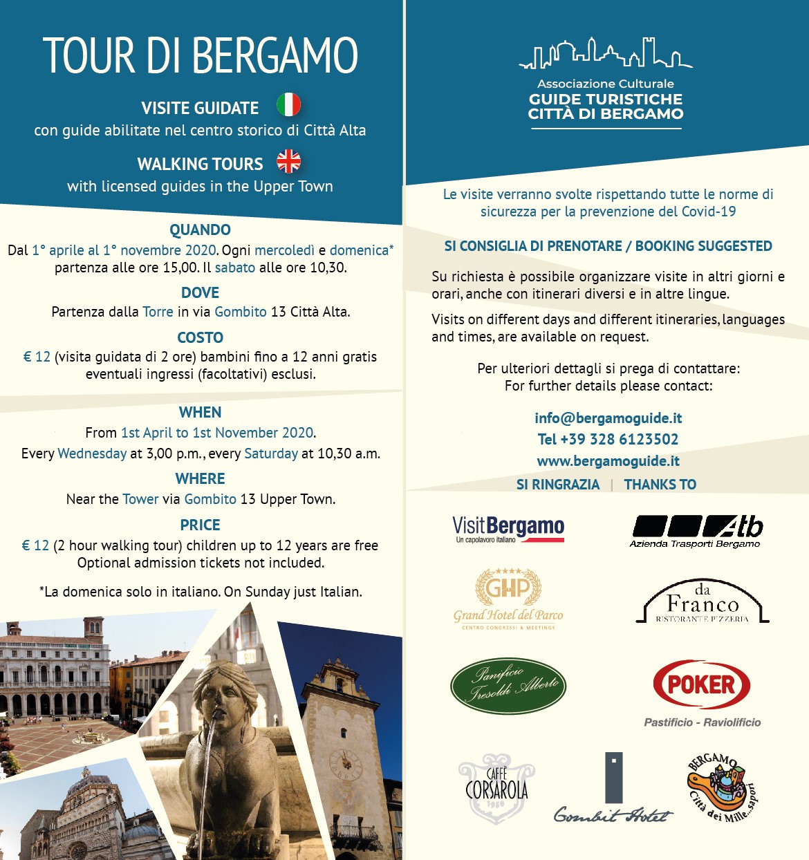 Grazie al contributo di sponsor che sostengono la valorizzazione della cultura attraverso la conoscenza del patrimonio locale, l'Associazione Guide turistiche Città di Bergamo prosegue negli anni questa iniziativa e attende non solo i turisti, ma anche i bergamaschi interessati a conoscere sempre meglio la nostra città tanto amata.