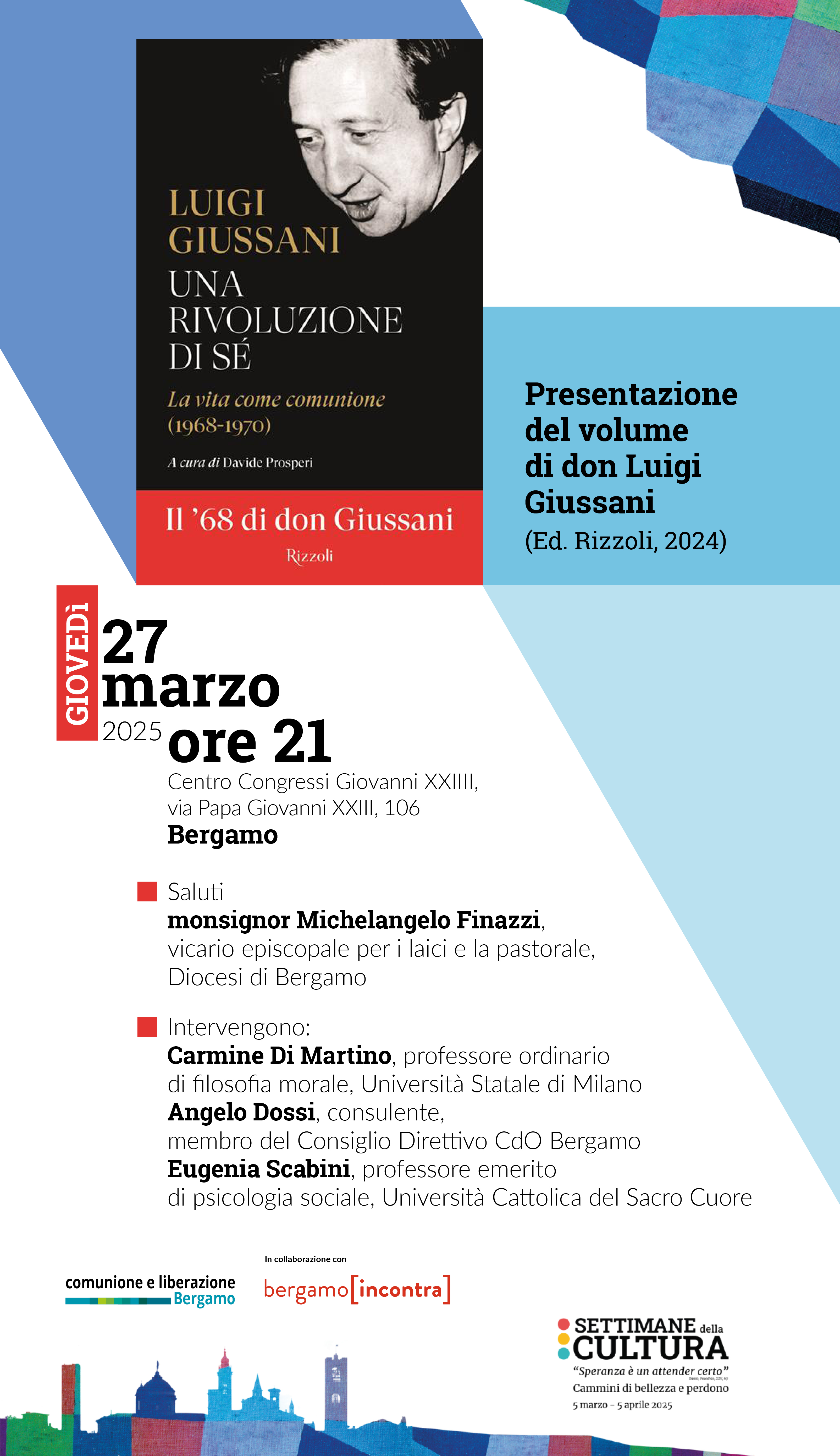 Proseguono le iniziative delle "Settimane della Cultura" con la presentazione del volume "Una rivoluzione di sé" organizzata da Comunione e Liberazione Bergamo e Associazione Bergamo Incontra
