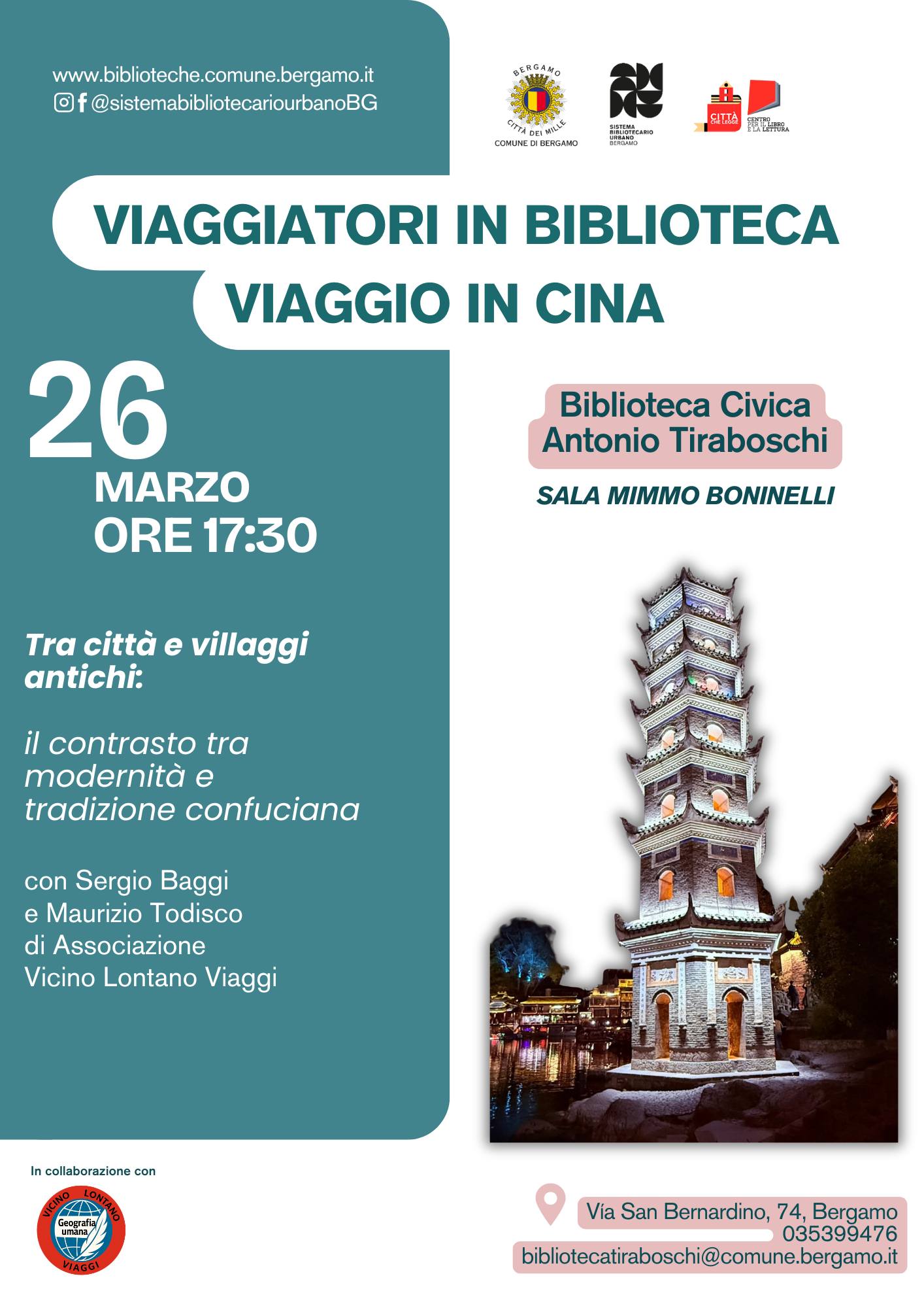 Per il ciclo di incontri ยซD[i]ritti in bibliotecaยป alla Biblioteca Tiraboschi di Bergamo, รจ in programma la proiezione di un documentario, realizzato durante un viaggio in Cina. Con Sergio Baggi e Maurizio Todisco.