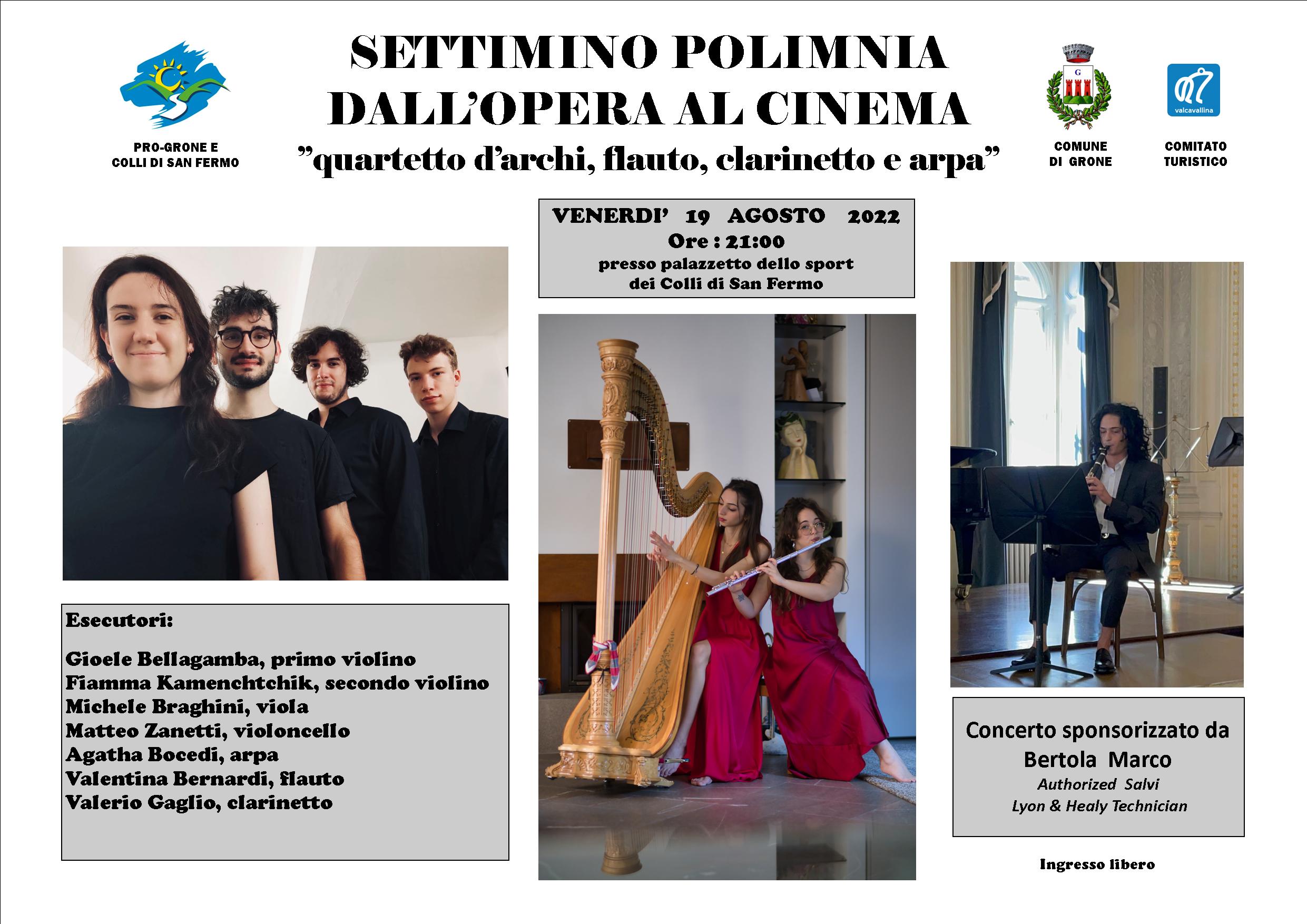 Il Comune di Grone e pro Grone e Colli di San Fermo propone un concerto del Settimino Polimnia composto dai musicisti: