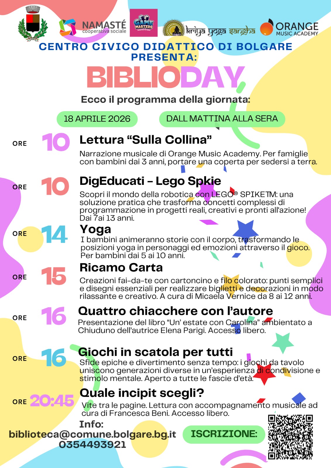 Il Centro Civico Didattico di Bolgare presenta il Biblioday, un evento speciale che si terrร sabato 18 aprile.