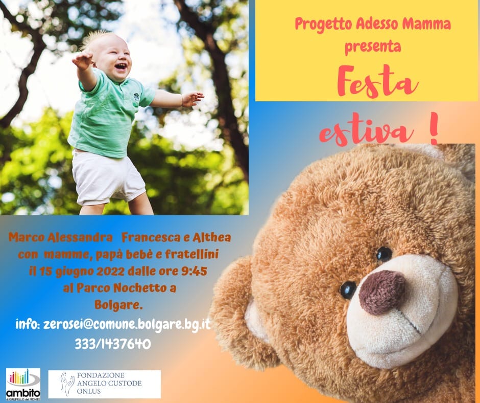 Il progetto "Adesso Mamma" propone una festa estiva presso il Parco Nochetto a Bolgare.