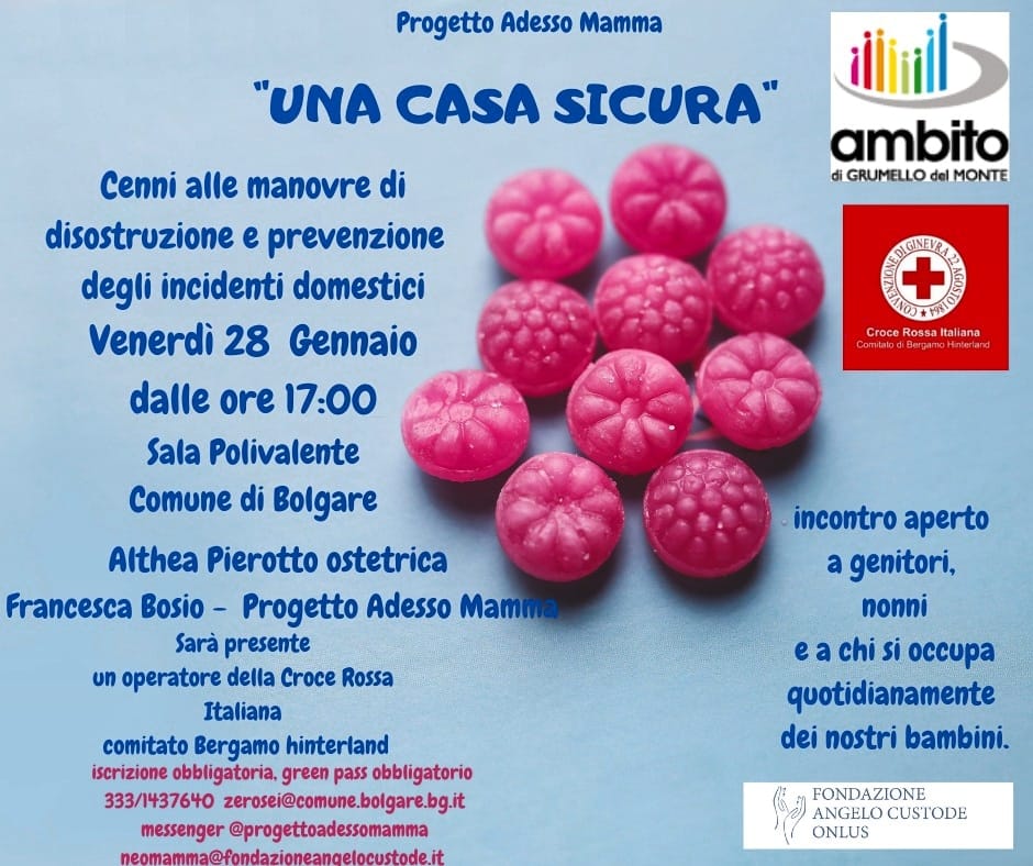 Venerdì 28 Gennaio ore 17 presso la Sala Polivalente del comune di Bolgare, un incontro organizzato da "Progetto Adesso Mamma" con il supporto di Croce Rossa Italiana - Comitato di Bergamo Hinterland aperto a genitori, nonni e a chi si occupa quotidianamente di bambini e neonati.