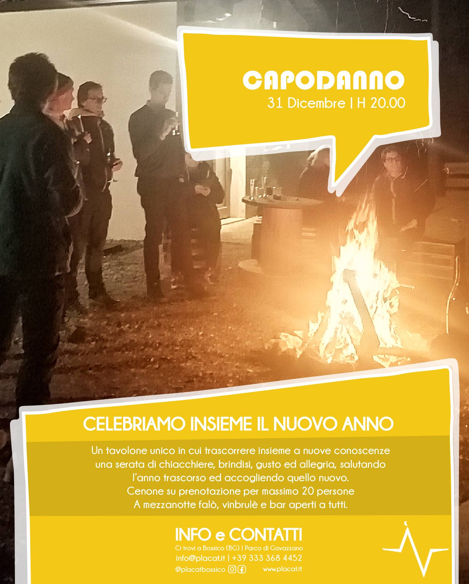 Per festeggiare in compagnia l'arrivo del nuovo anno, l'Eco Campeggio Placàt organizza un cenone per cui, allo scoccare della mezzanotte si accenderà un falò.