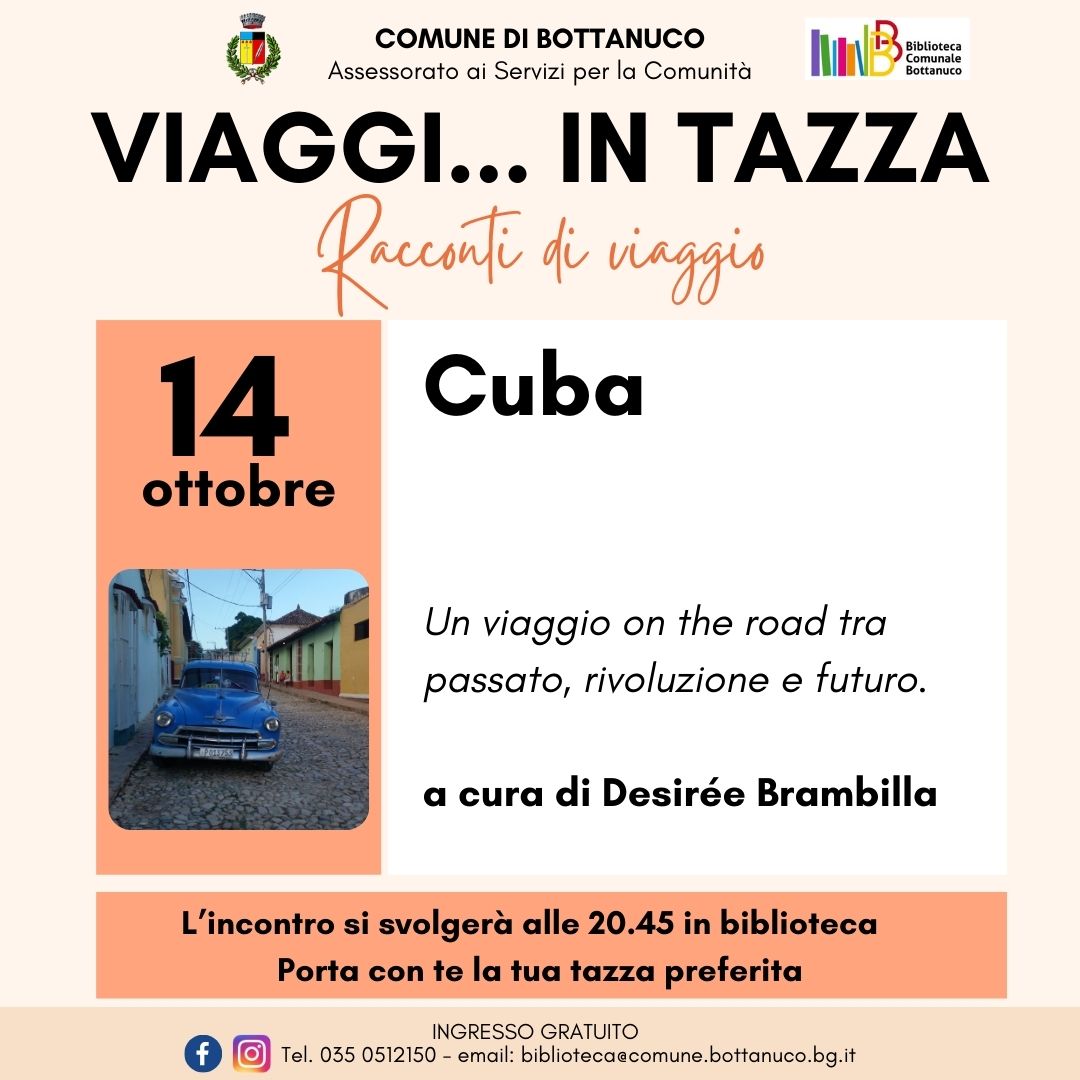 Per la rubrica «Racconti di viaggio» appuntamento con Desirée Brambilla che parlerà di cuba in un un viaggio fai-da-te on the road tra passato, rivoluzione e futuro.
