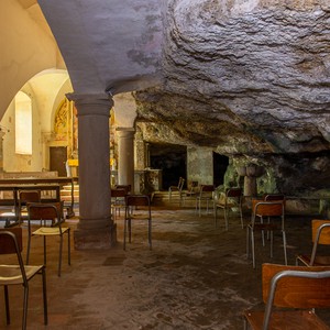 La chiesa comprende una parte sotterranea costituita da una grotta e una parte superiore esterna, del XV-XVI secolo, formata da un locale unico, a pianta rettangolare, completato da una piccola torre campanaria.