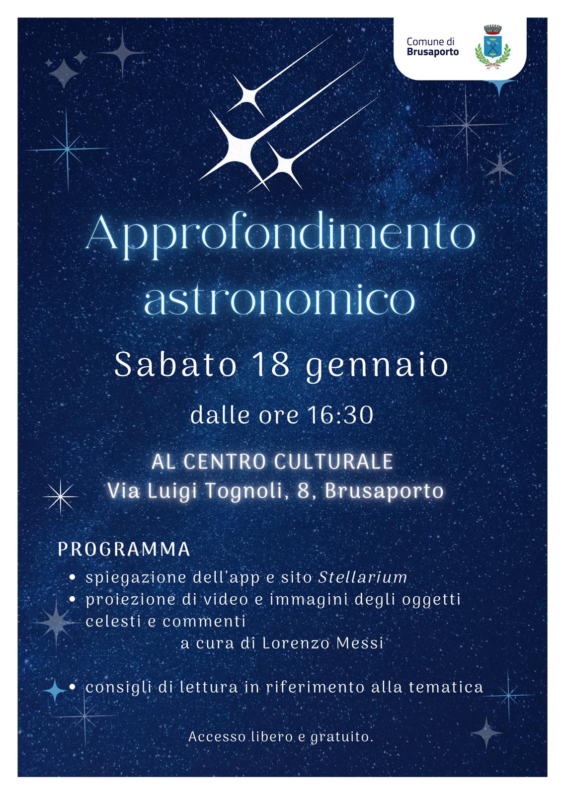 Il Comune di Brusaporto vi aspetta a scoprire lo spazio, le stelle e i pianeti in un pomeriggio di approfondimento astronomico.