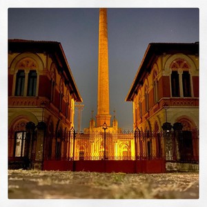 Tour di Crespi d'Adda al tramonto
