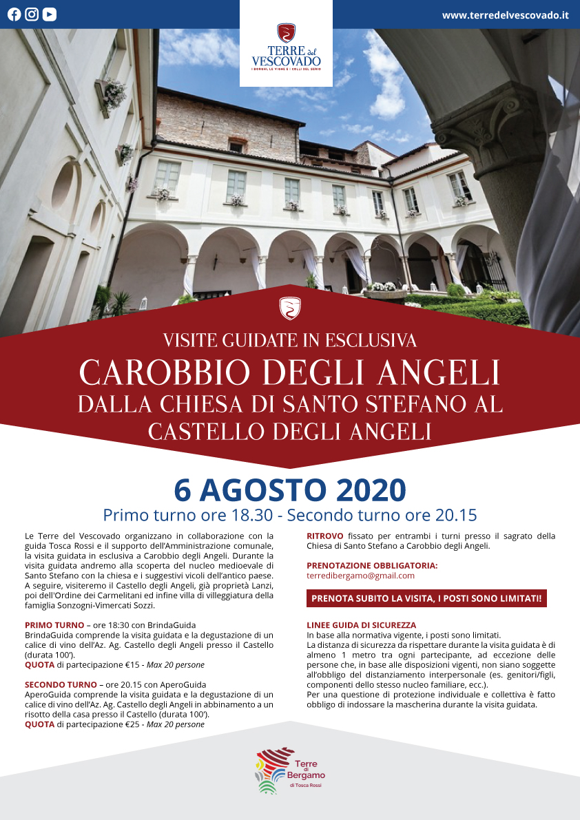 Le Terre del Vescovado organizzano, in collaborazione con la guida Tosca Rossi e il supporto dell’Amministrazione comunale, la visita guidata in esclusiva a Carobbio degli Angeli. Durante la visita guidata andrete alla scoperta del nucleo medioevale di Santo Stefano con la chiesa e i suggestivi vicoli dell’antico paese. A seguire, visiterete il Castello degli Angeli, già proprietà Lanzi, poi dell'Ordine dei Carmelitani ed infine villa di villeggiatura della famiglia Sonzogni-Vimercati Sozzi.