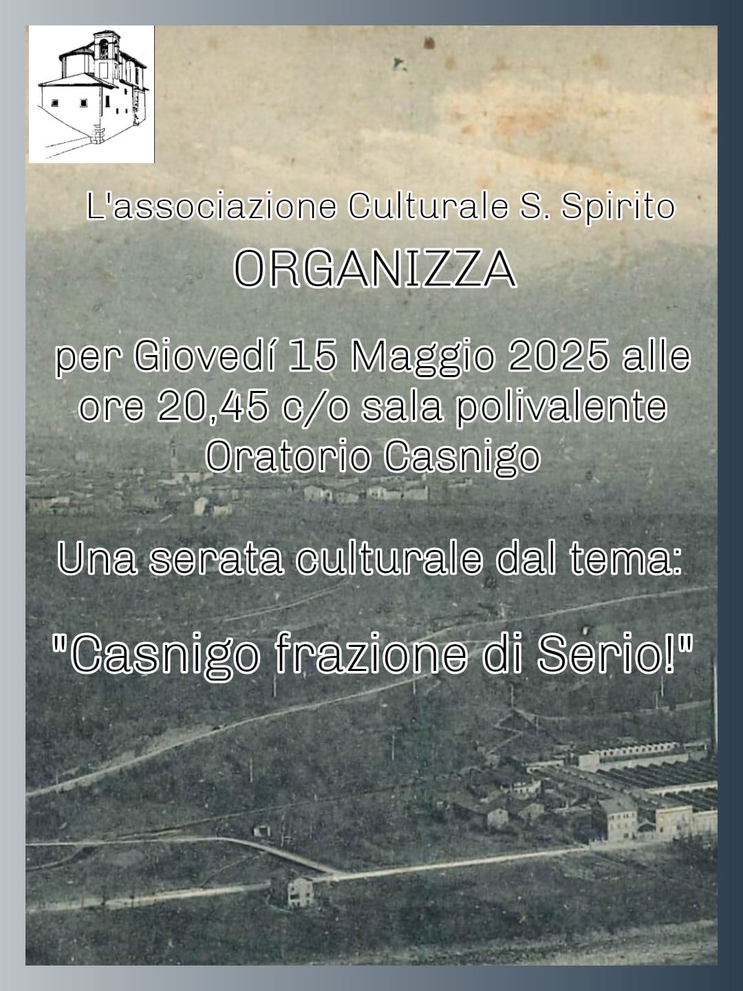 Giovedì 15 Maggio 2025 alle ore 20:45 presso la sala polivalente dell'Oratorio di Casnigo